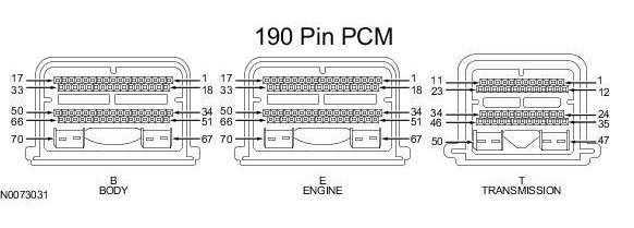 Powertrain Control Module (PCM) Connector - For PCM connector views or reference values, refer to Reference Values.