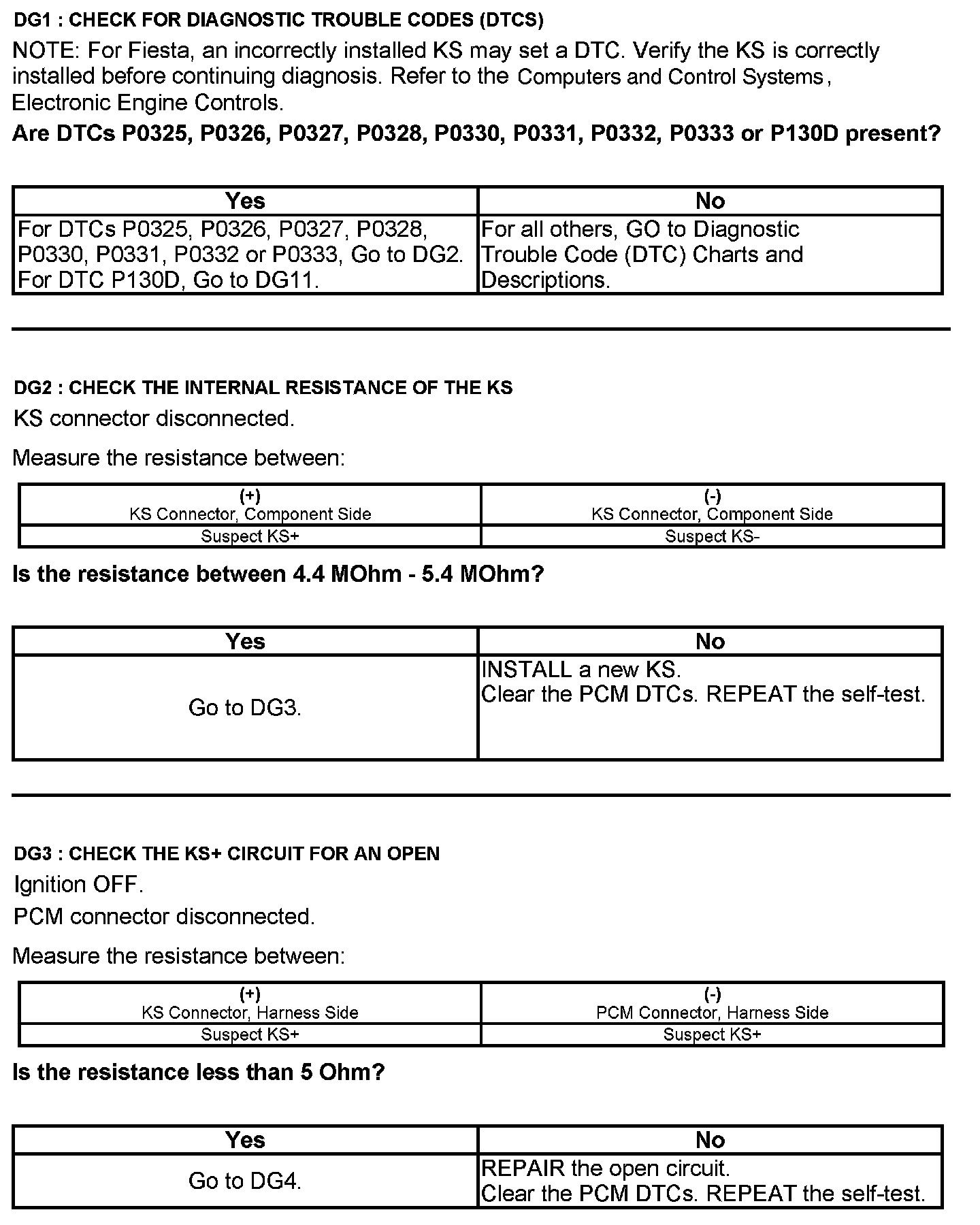 Test DG: Knock Sensor (KS)