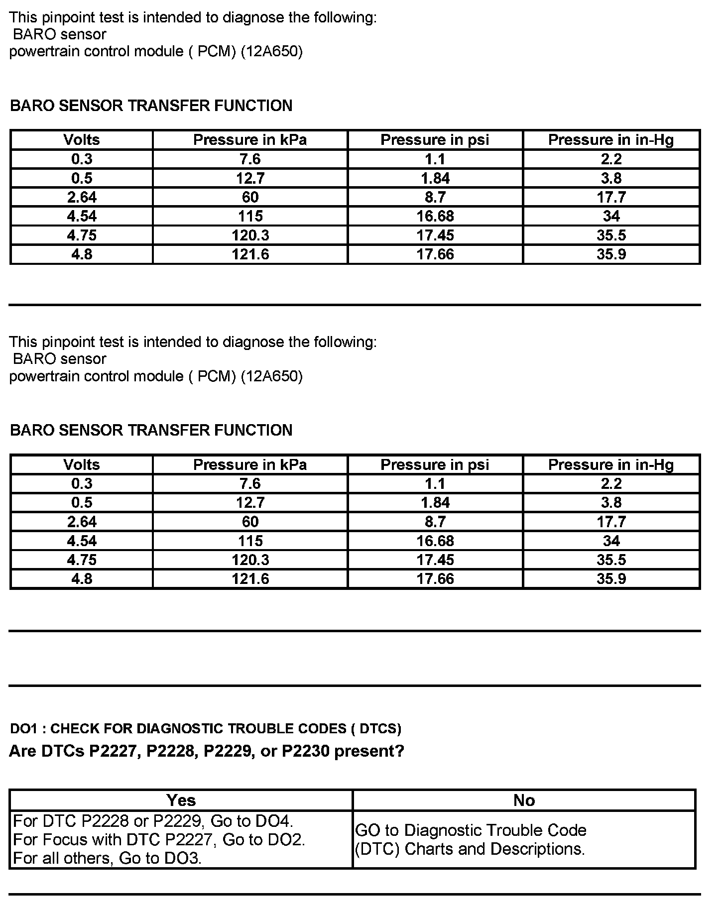 Test DO: Barometric Pressure (BARO) Sensor