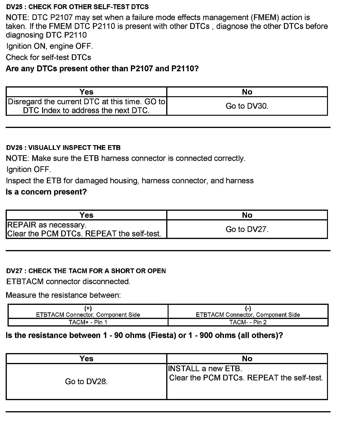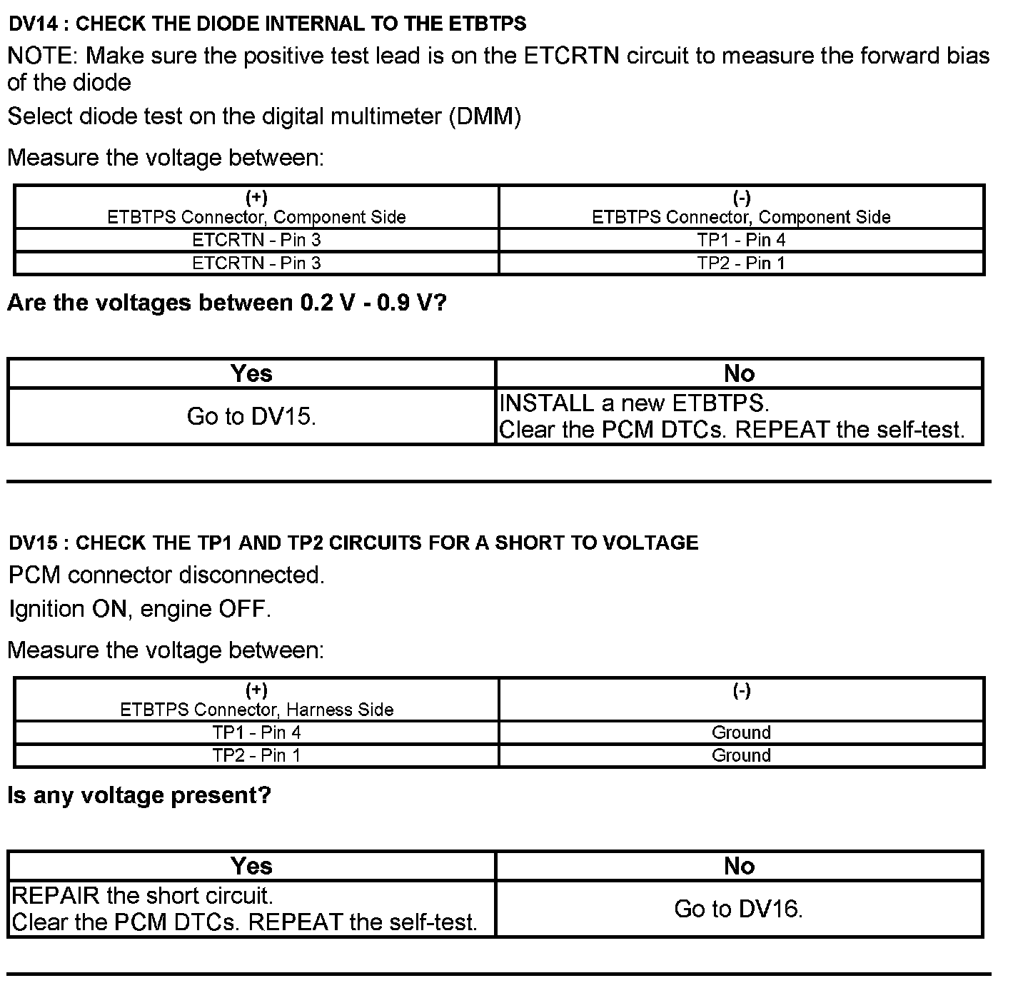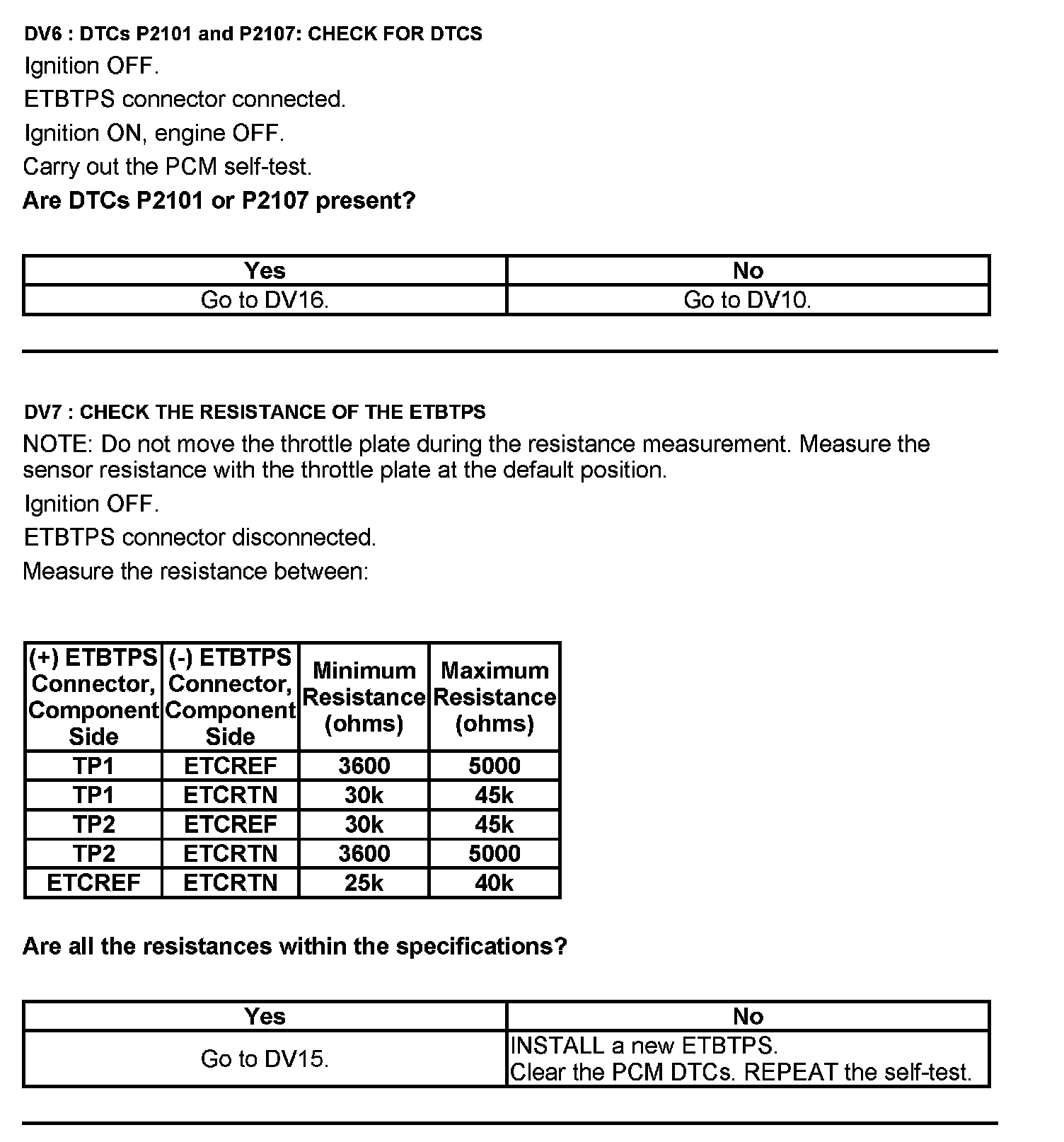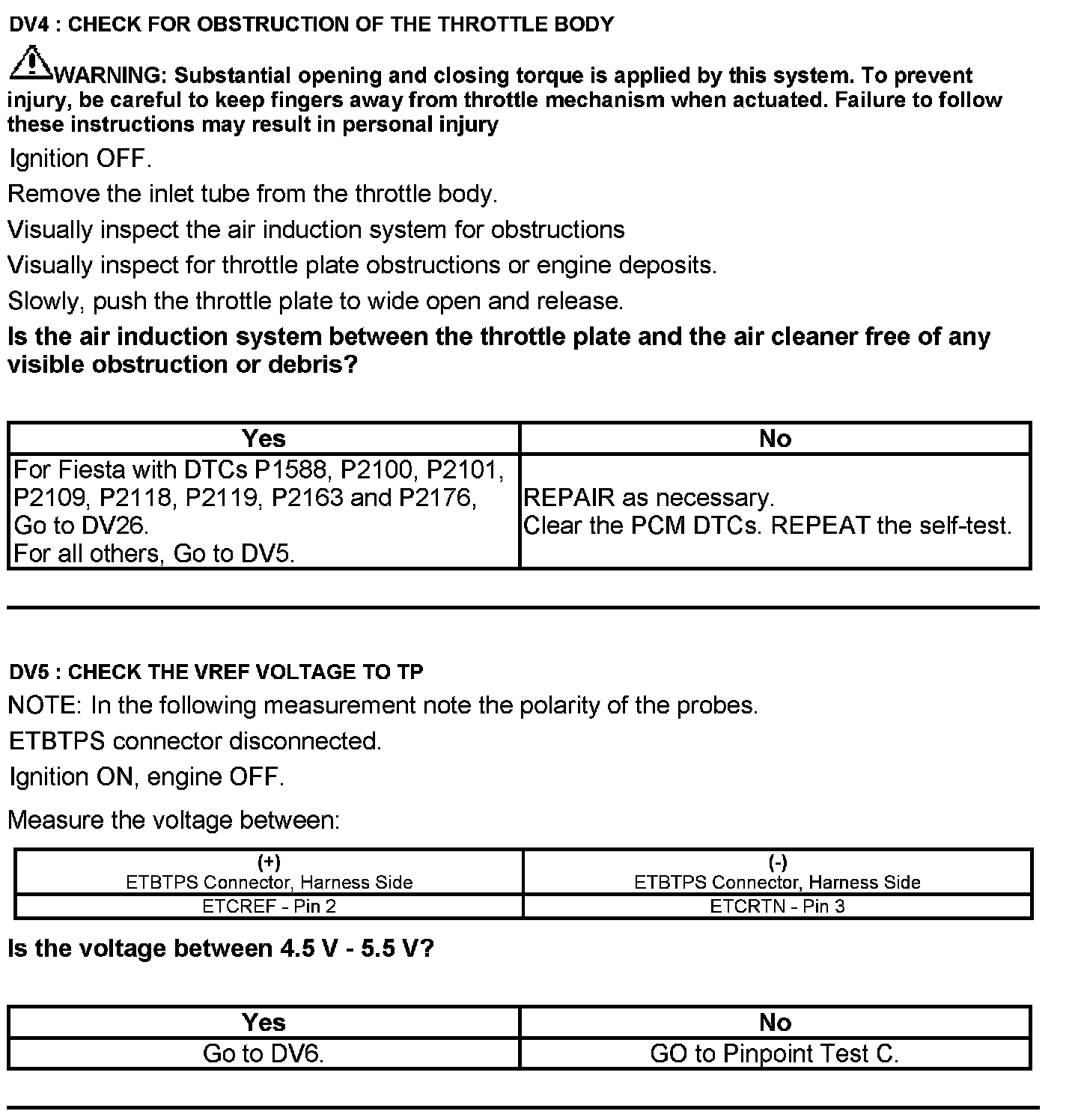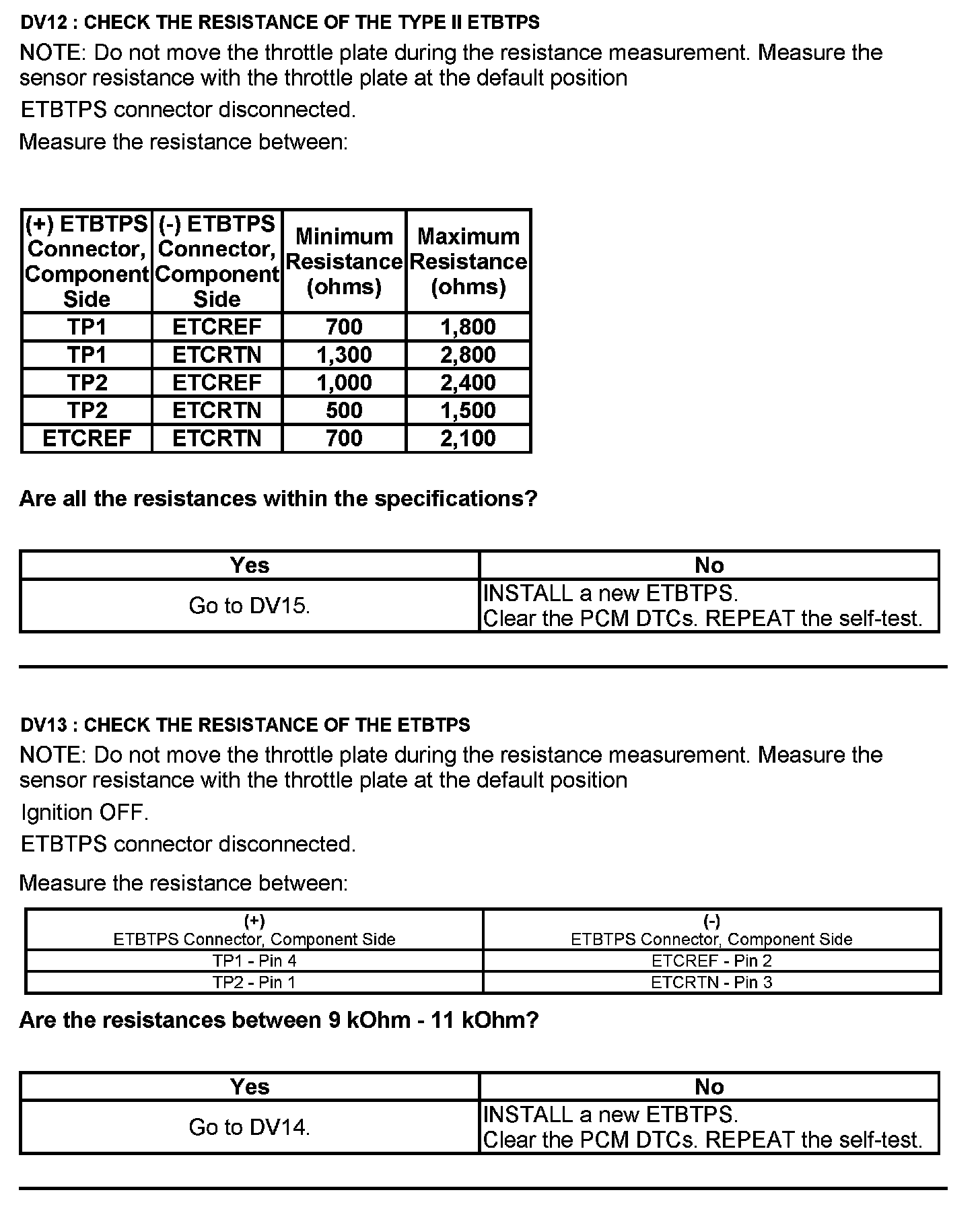 Test DV: Throttle Body Assembly Electronic Throttle Control (ETC)