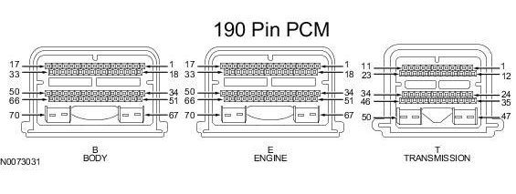 Powertrain Control Module (PCM) Connector - For PCM connector views or reference values, refer to Reference Values.