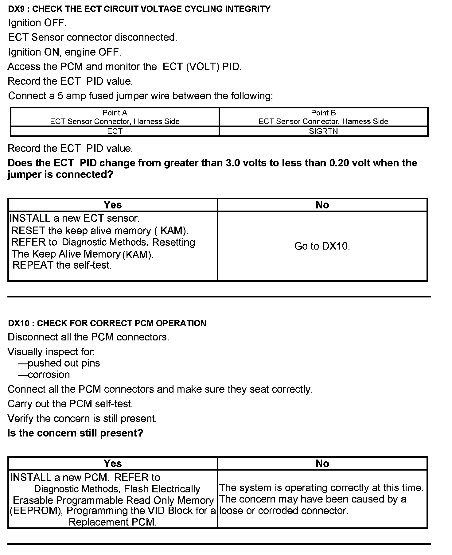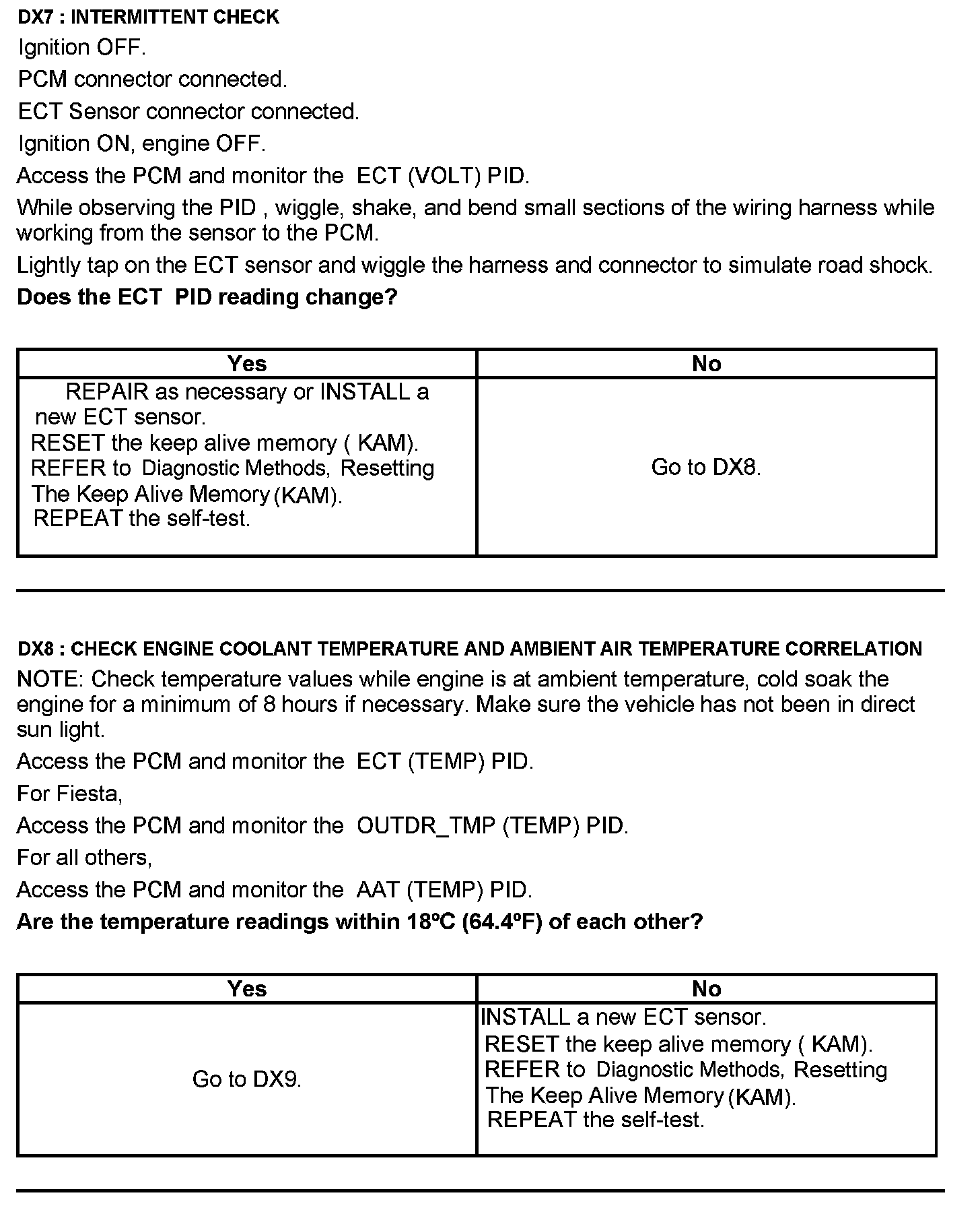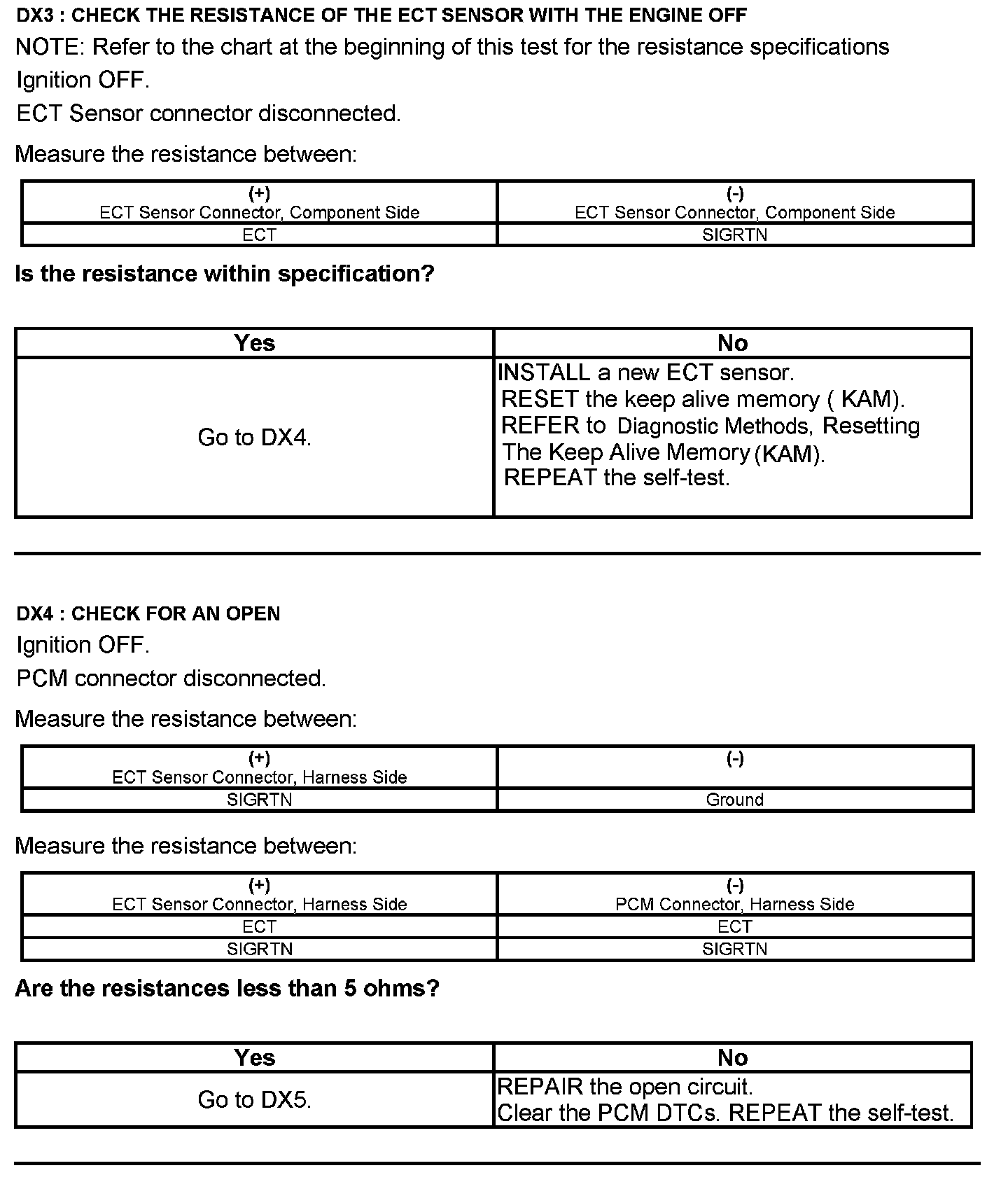 Test DX: Engine Coolant Temperature (ECT) Sensor