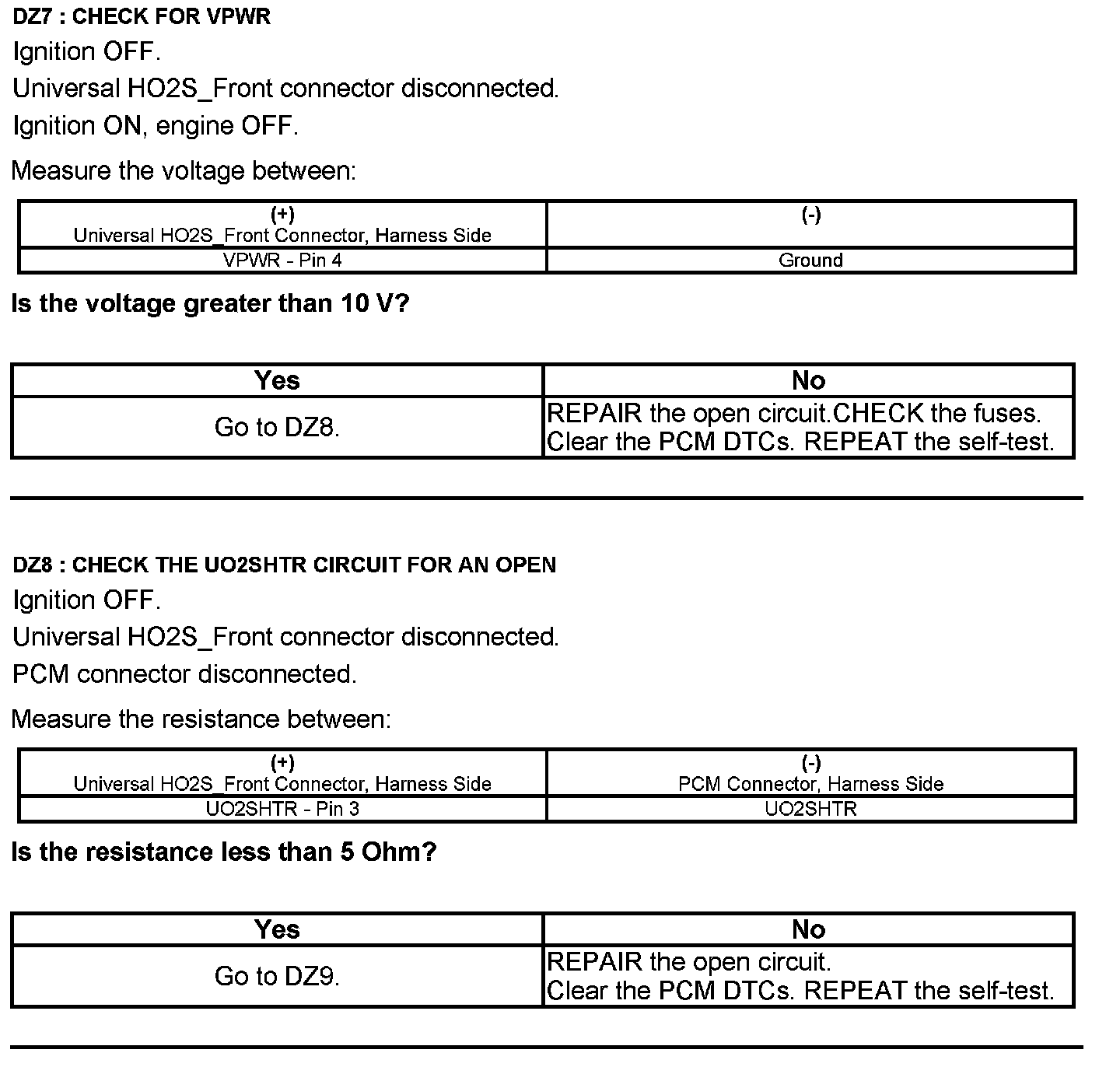 Test DZ: Universal Heated Oxygen Sensor (HO2S)