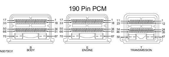 Powertrain Control Module (PCM) Connector - For PCM connector views or reference values, refer to Reference Values.