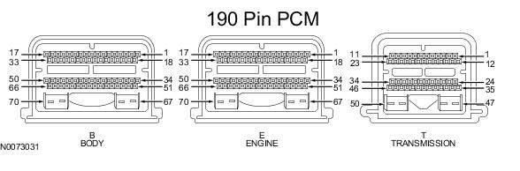 Powertrain Control Module (PCM) Connector - For PCM connector views or reference values, refer to Reference Values.