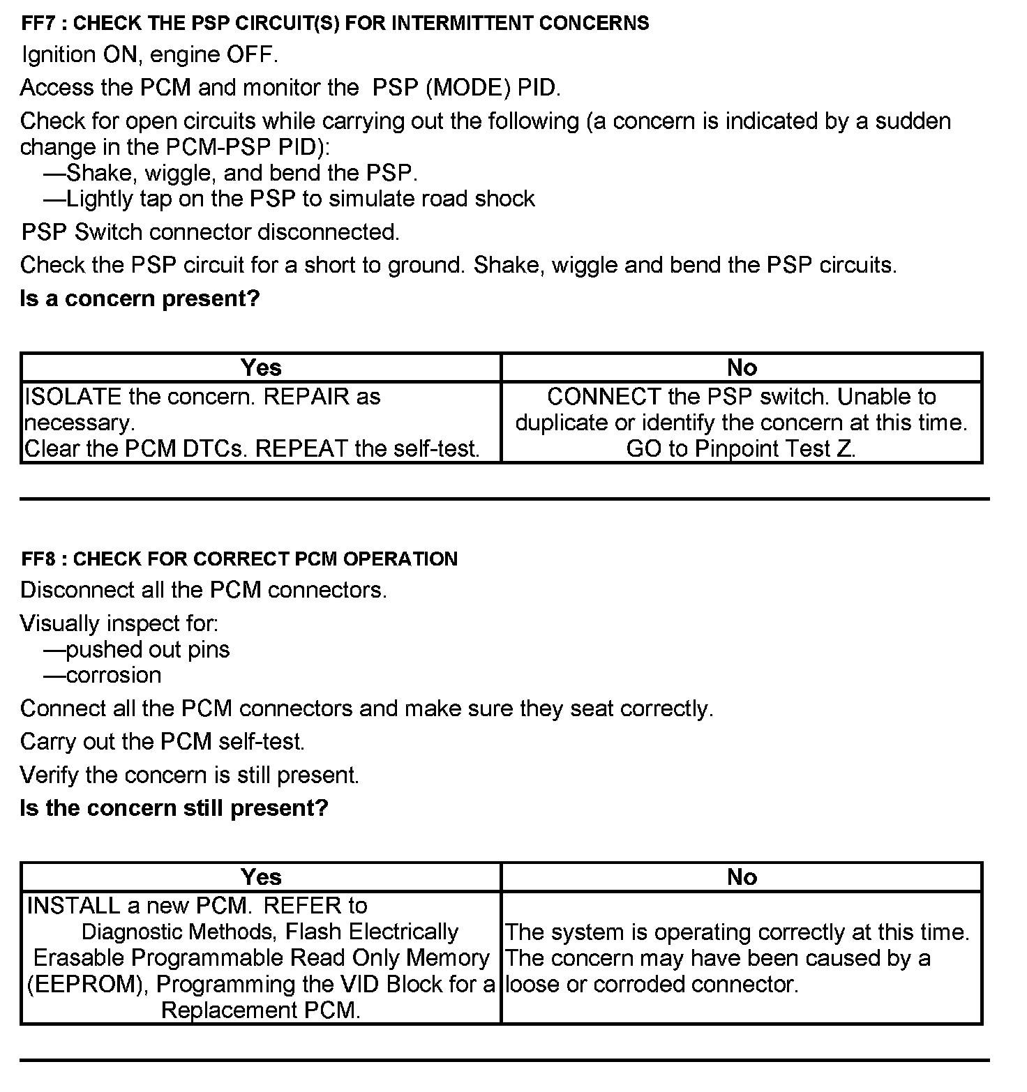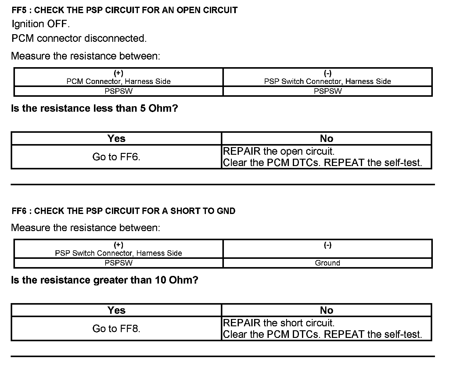 Test FF: Power Steering Pressure (PSP) Switch