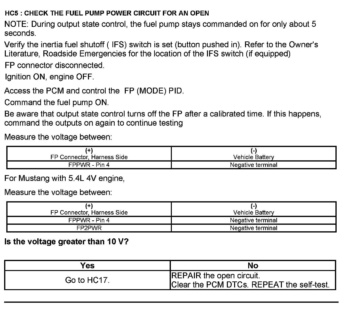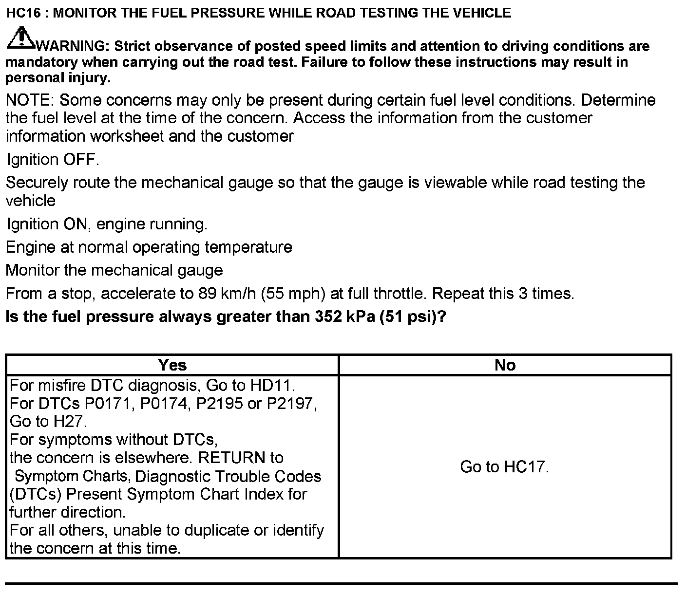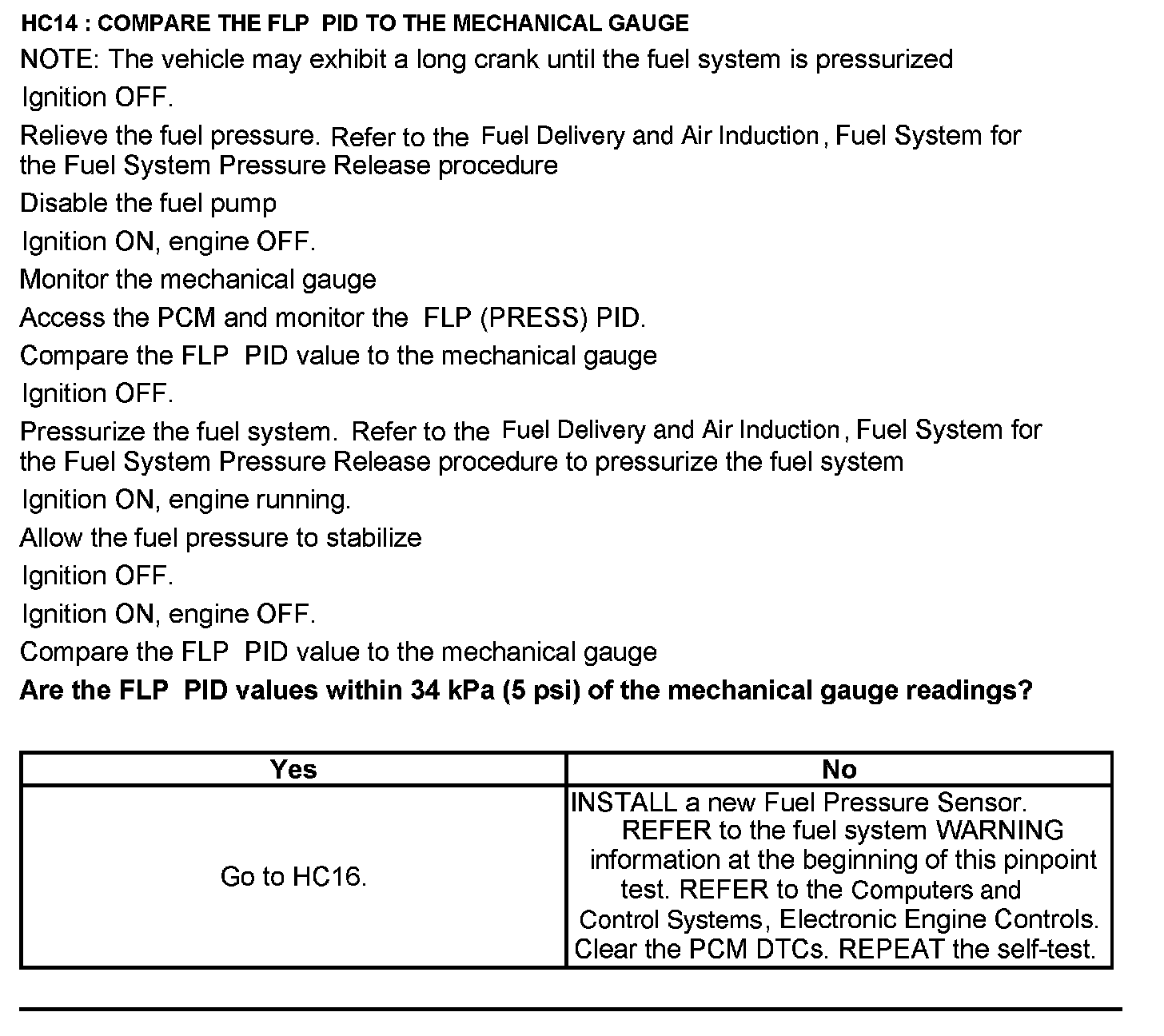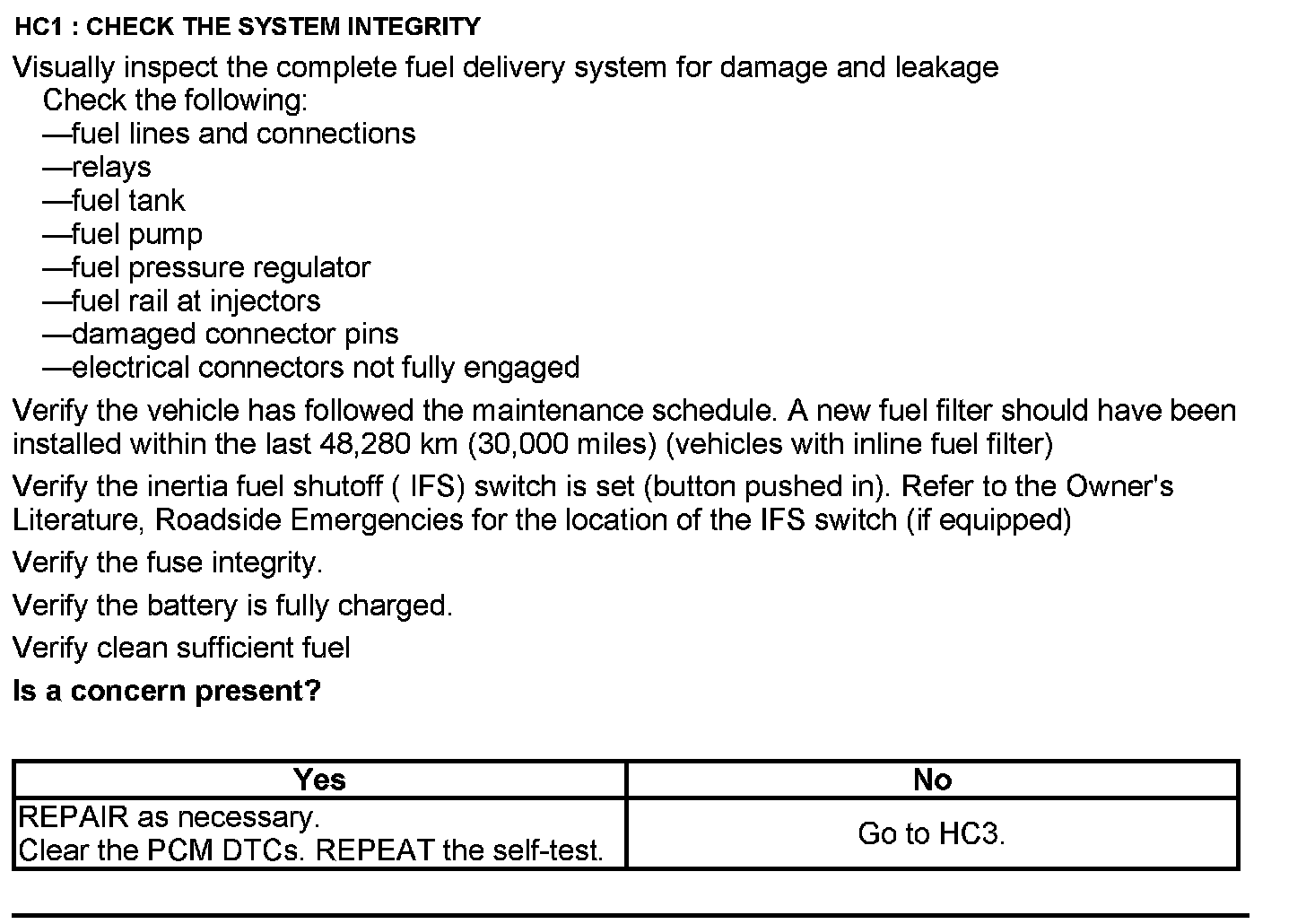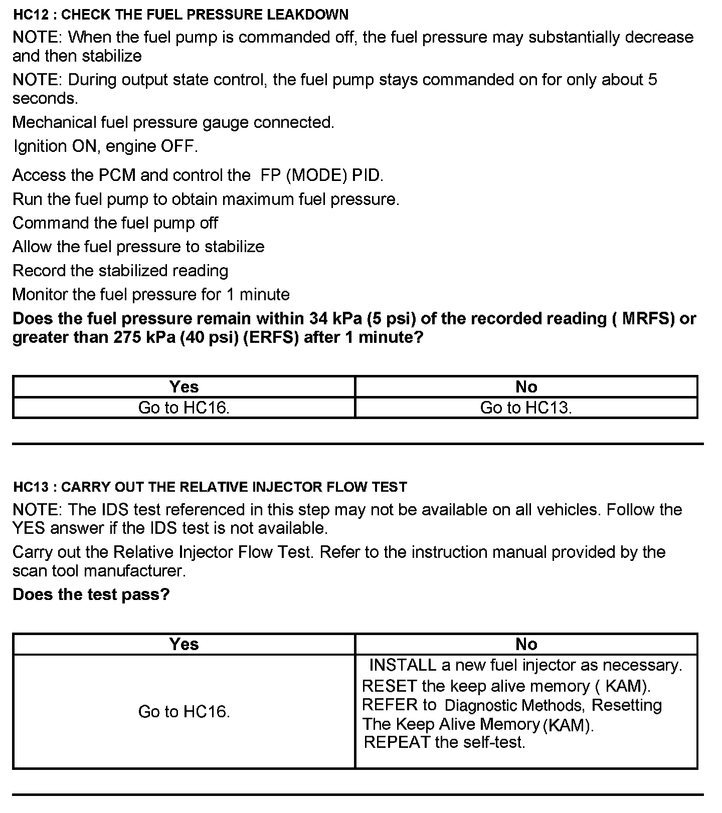 Test HC: Fuel Delivery System