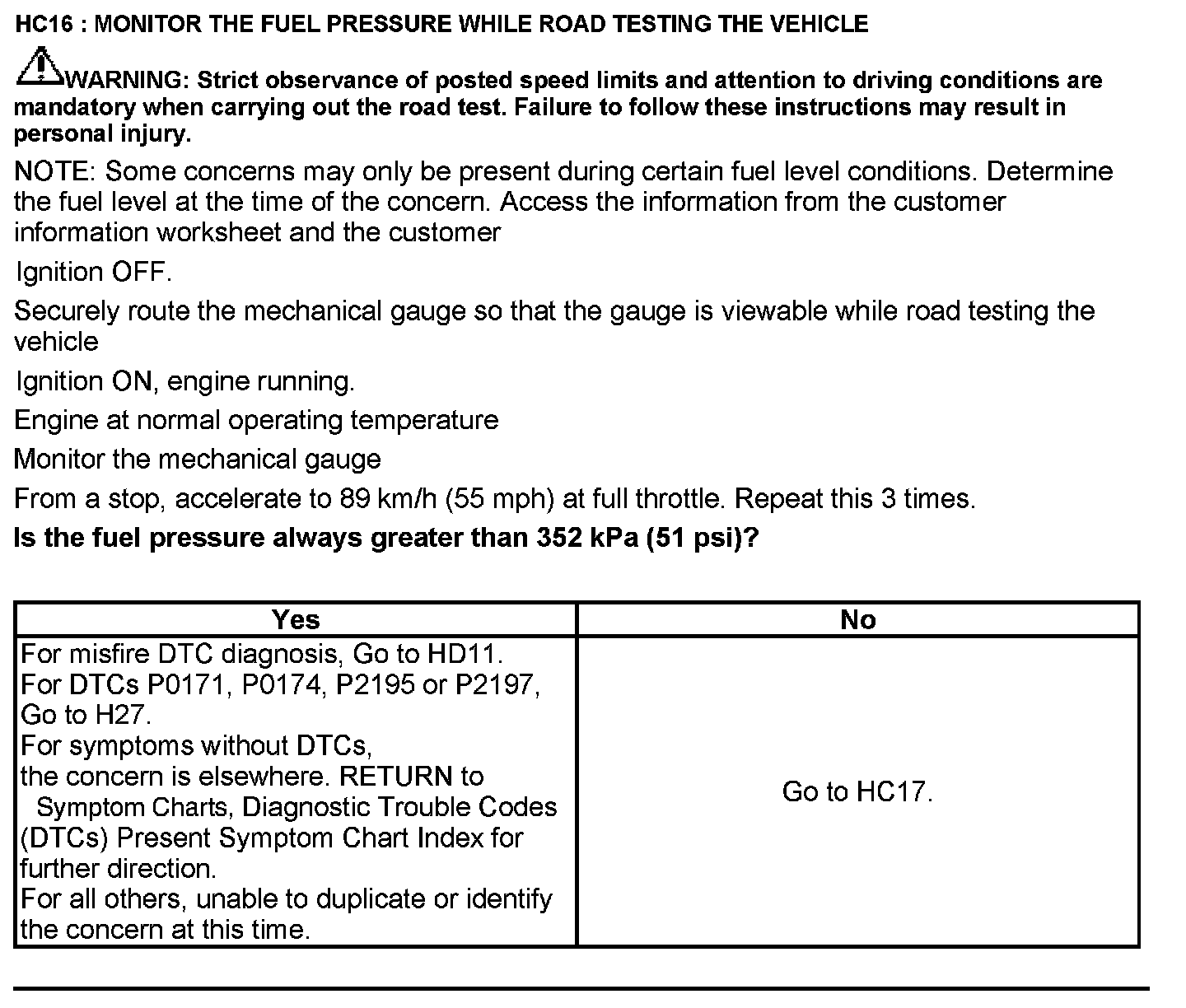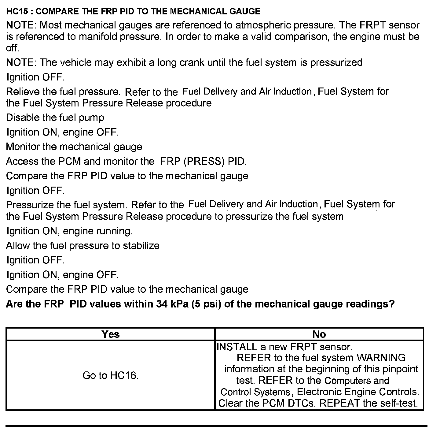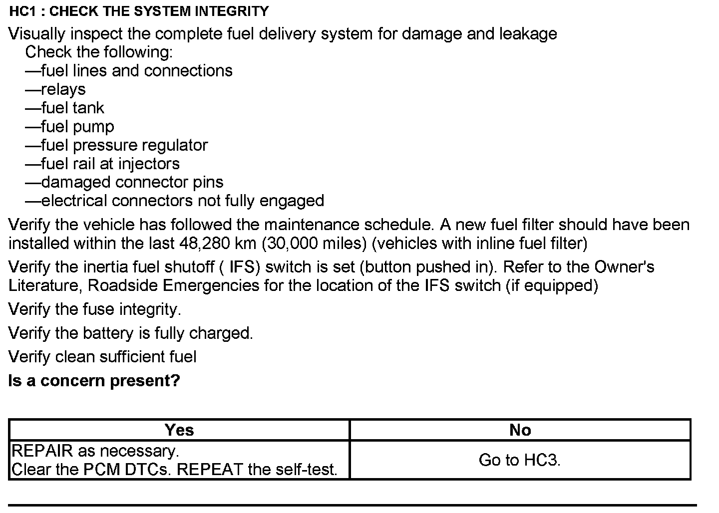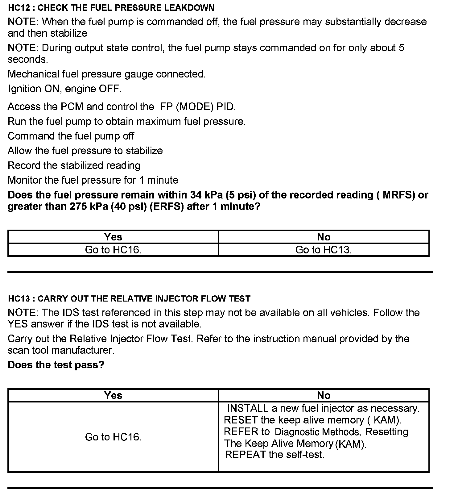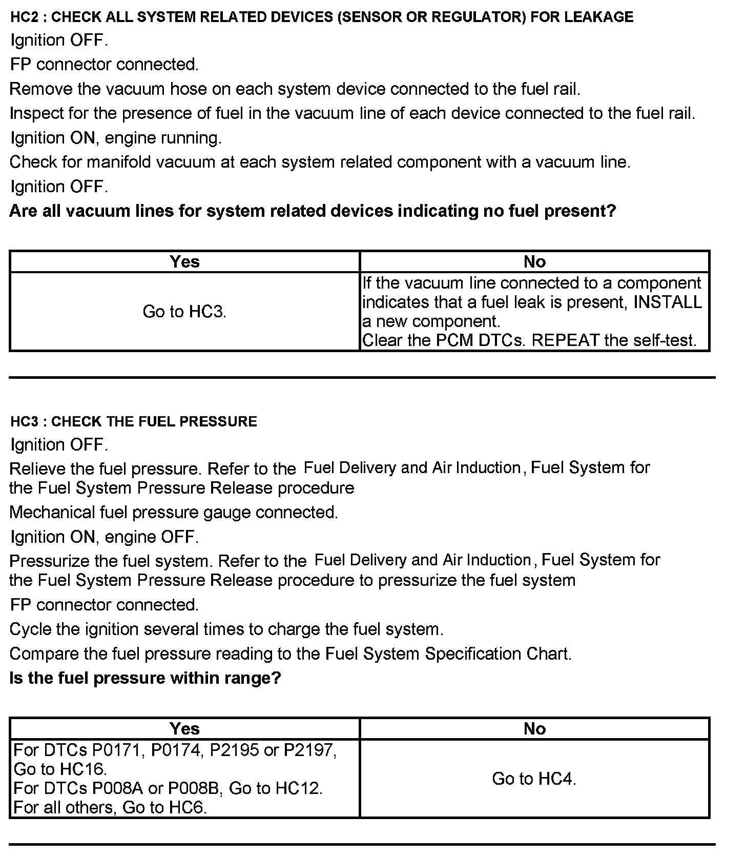 Test HC: Fuel Delivery System