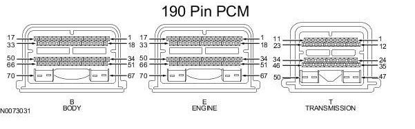 Powertrain Control Module (PCM) Connector - For PCM connector views or reference values, refer to Reference Values.