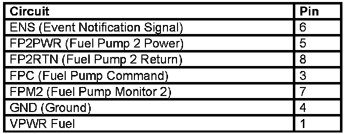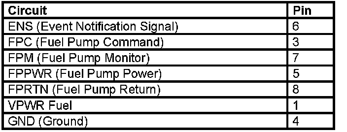 Fuel Pump Control Module Relay Connector - Refer to the Wiring Diagrams for schematic and connector information.