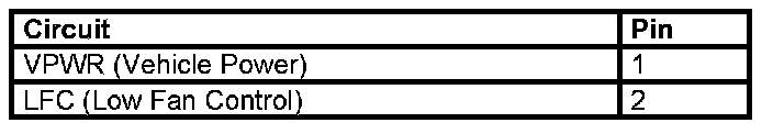 NOTE: The VPWR and LFC circuits may be reversed in the harness connector. Also, the LFC circuit may be wired to two separate relays. Refer to the Wiring Diagrams for additional information.