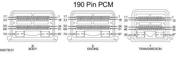 Powertrain Control Module (PCM) Connector - For PCM connector views or reference values, refer to Reference Values.
