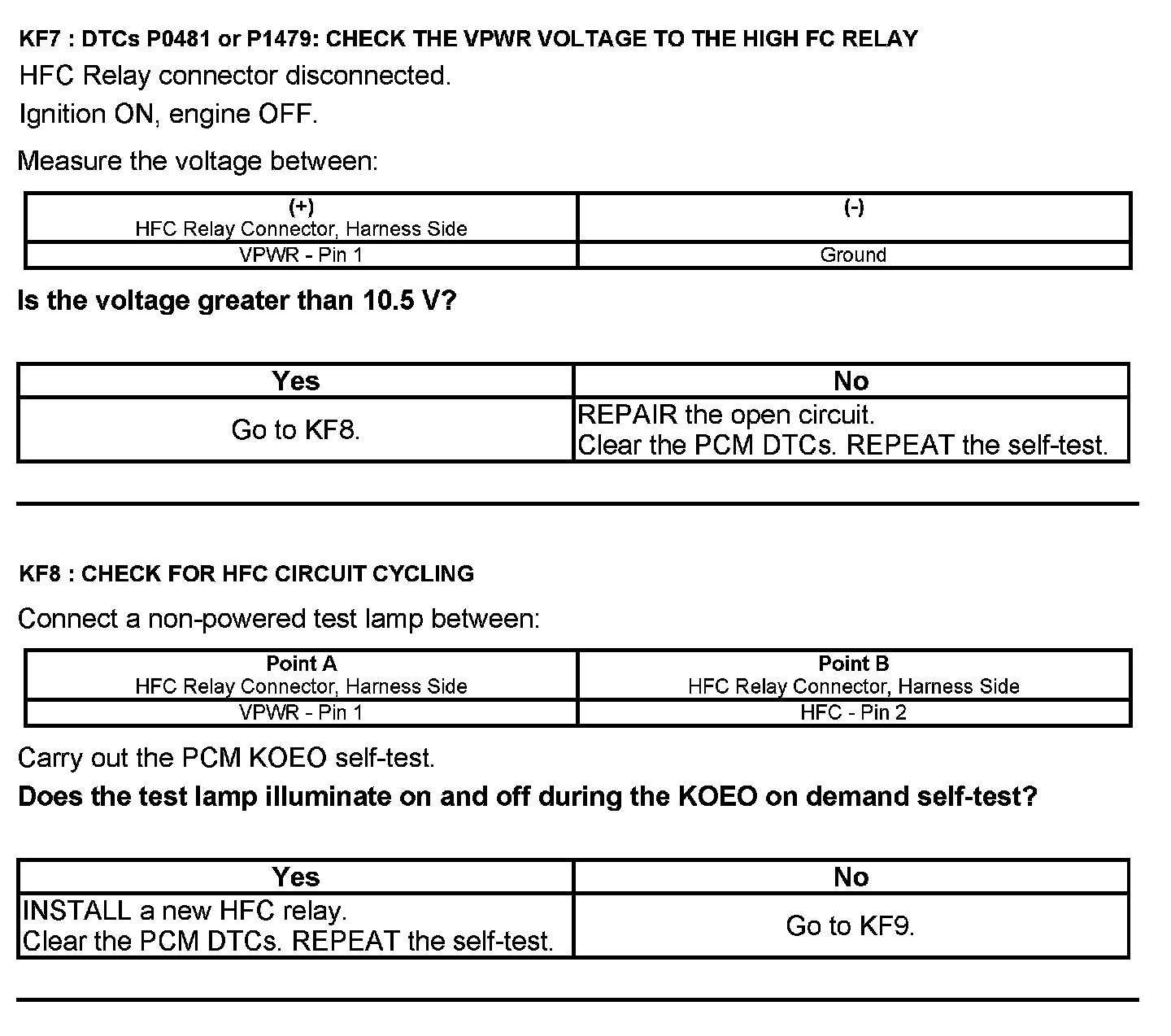 NOTE: The VPWR and HFC circuits may be reversed in the harness connector. Also, the HFC circuit may be wired to two separate relays. Refer to the Wiring Diagrams for additional information.