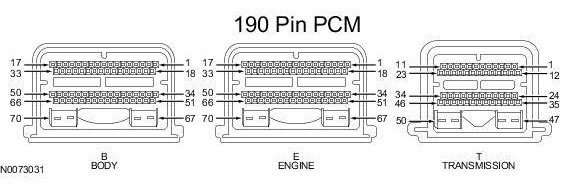 Powertrain Control Module (PCM) Connector - For PCM connector views or reference values, refer to Reference Values.