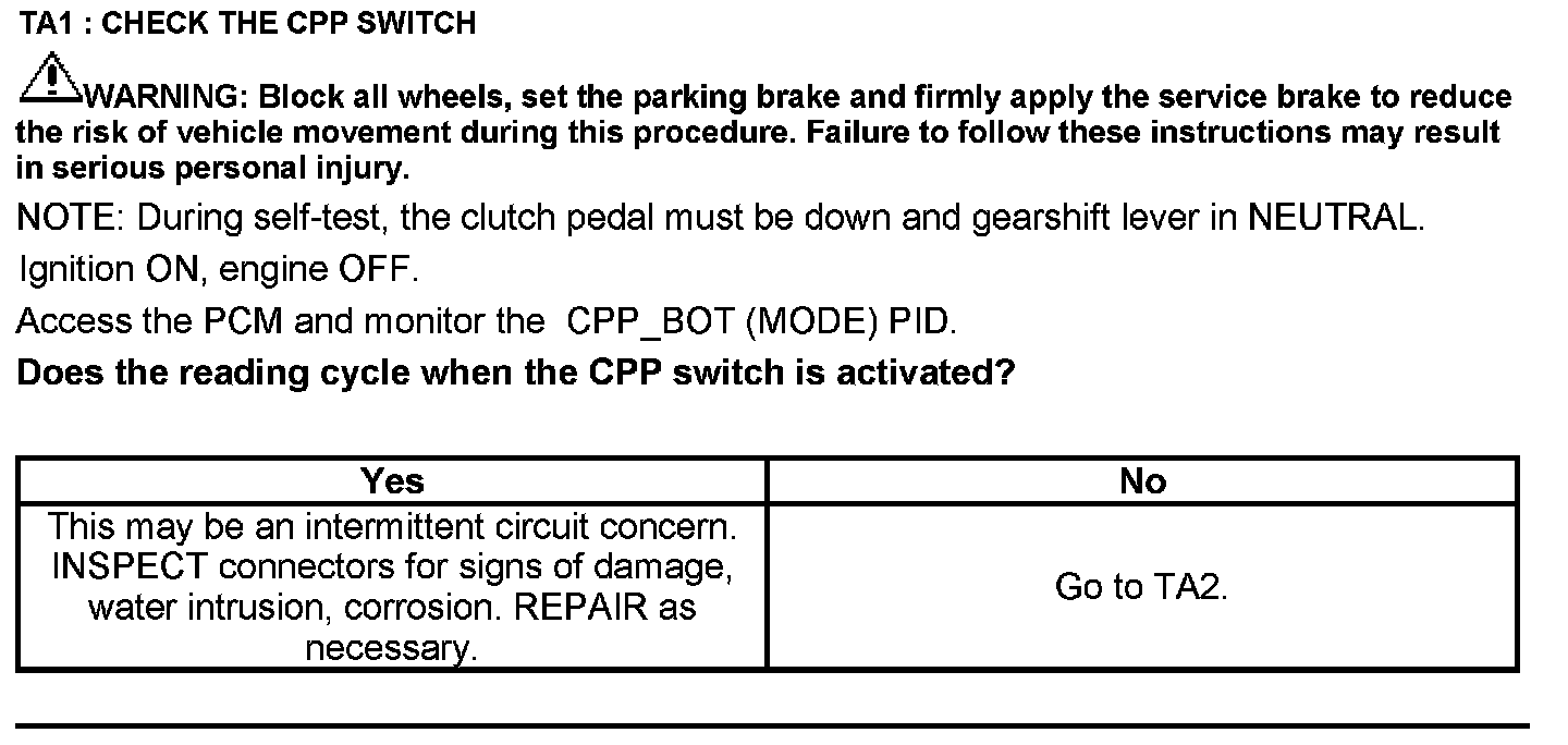 Test TA: Clutch Pedal Position (CPP#2) Switch