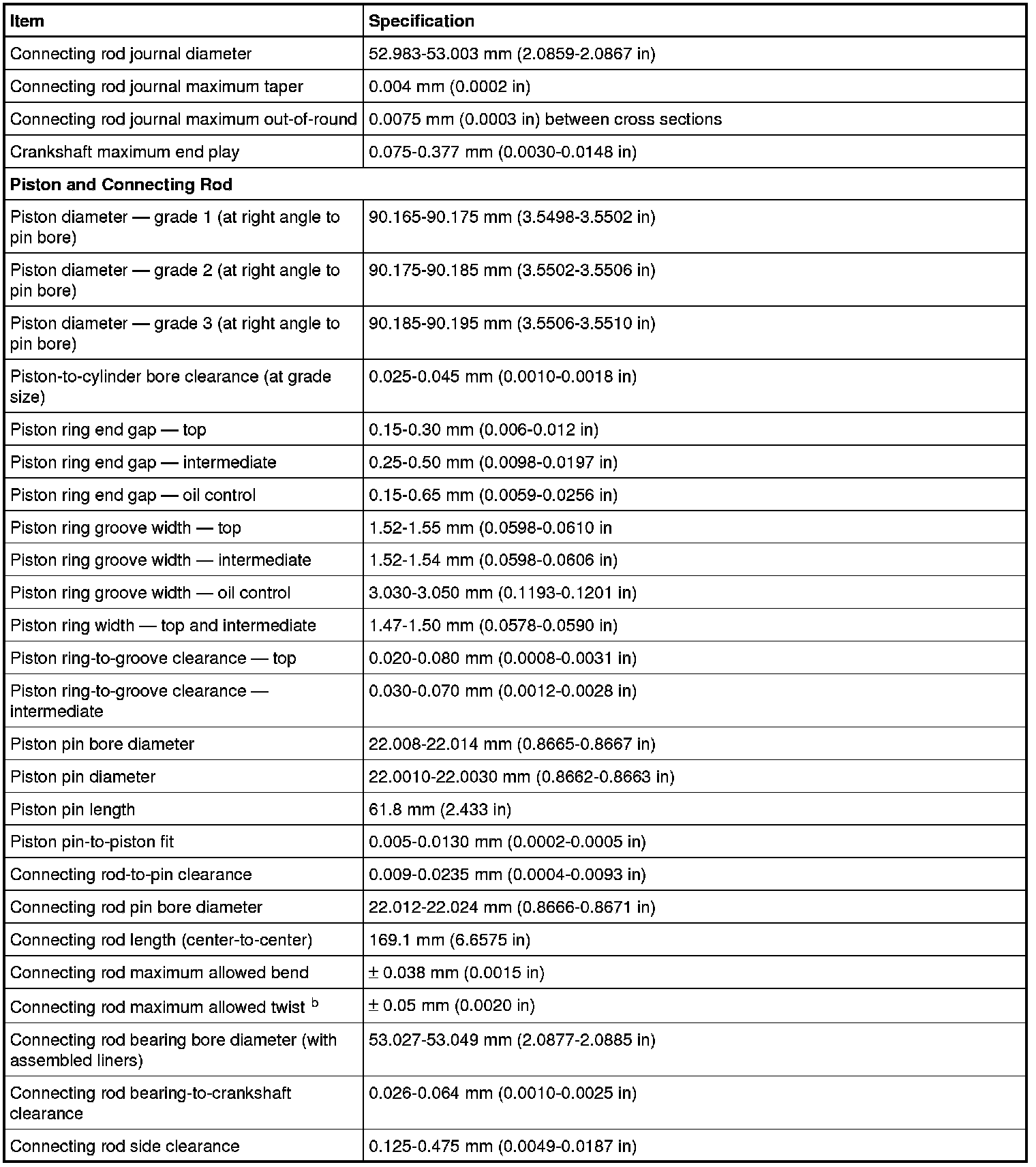 b The pin bore and crank bearing bore must be parallel and in the same vertical plane within the specified total difference when measured at the ends of a 203 mm bar, 105.5 mm on each side of rod centerline.