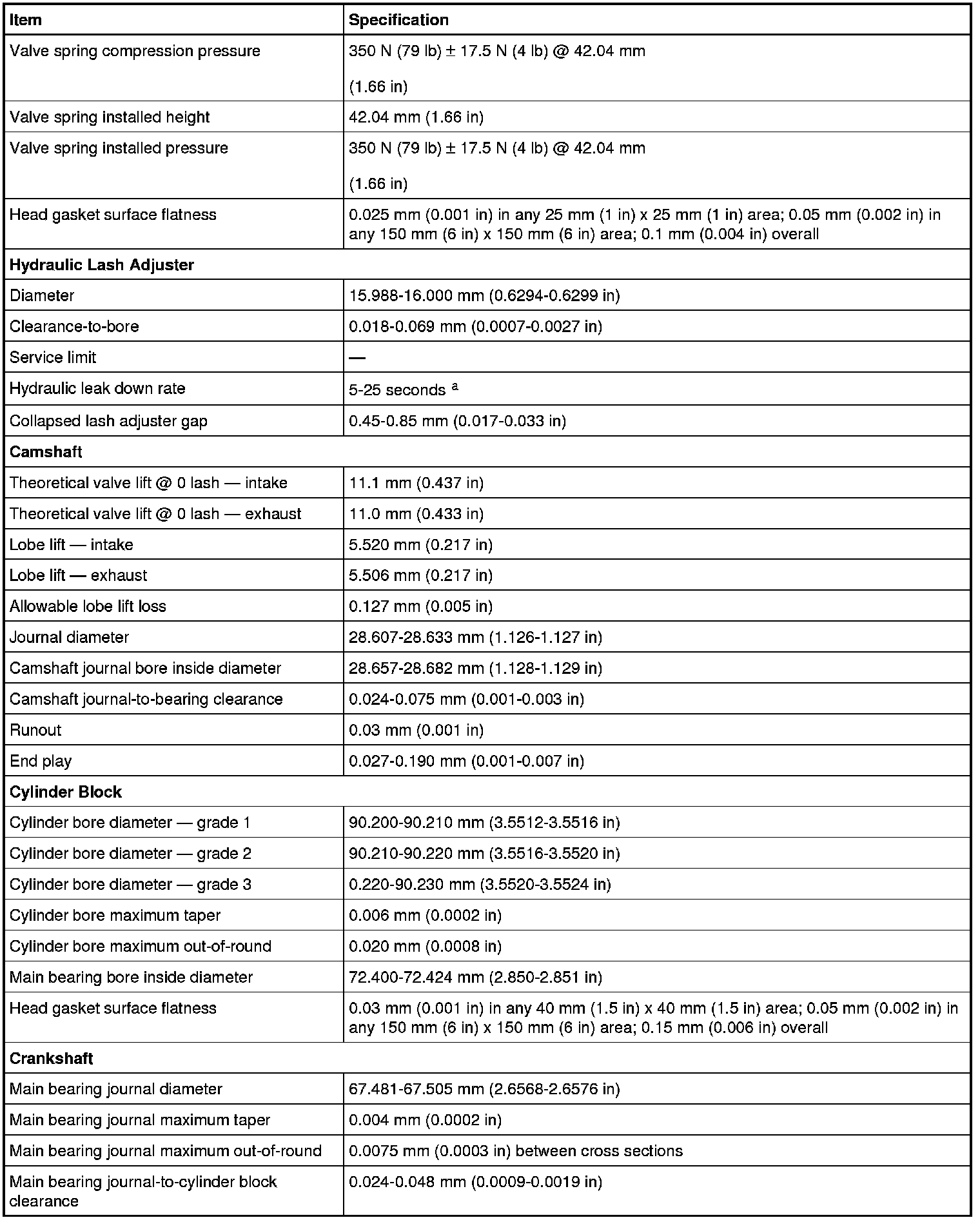 a The time required for the plunger to leak down 1.6 mm (0.062 in) of travel with 222 N force and leak-down fluid in the lash adjuster.