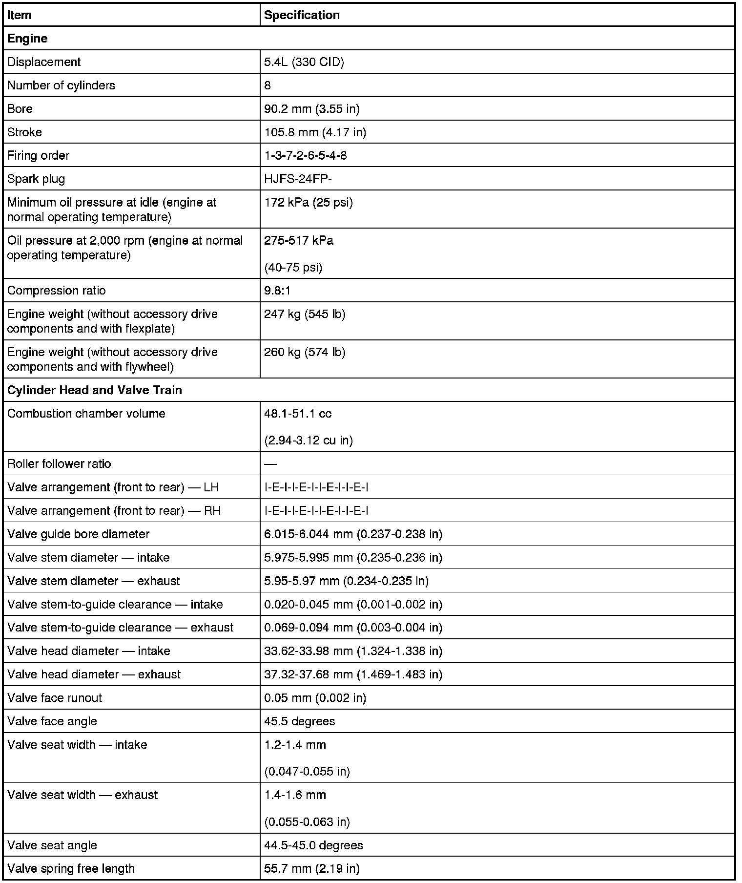Exhaust Manifold Specifications