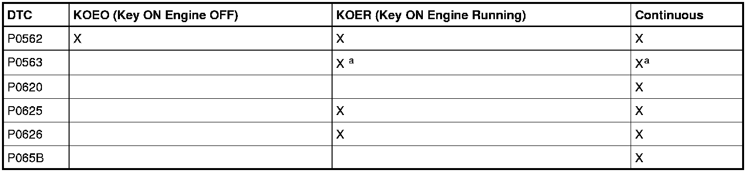 The PCM-controlled charging system, or "Smart Charge" charging system, determines the optimal voltage set point for the charging system and communicates this information to the voltage regulator. The "Smart Charge" charging system is designed to set 1 of 6 DTCs any time a charging system fault is present. All of the DTCs can set continuous faults, but not all DTCs will set as on-demand faults.