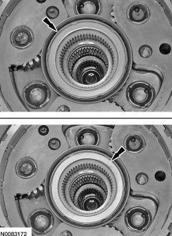 33. NOTICE: Install the snap ring with the beveled surface facing up and the snap ring gap in the 3 o'clock or the 9 o'clock position.