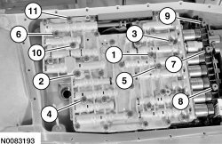65. Install the 11 mechatronic assembly bolts and tighten in the sequence shown.