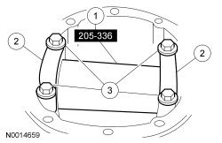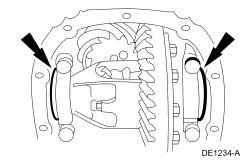 45. NOTE: Hand-tighten the differential bearing cap bolts prior to releasing the Differential Carrier Spreader.