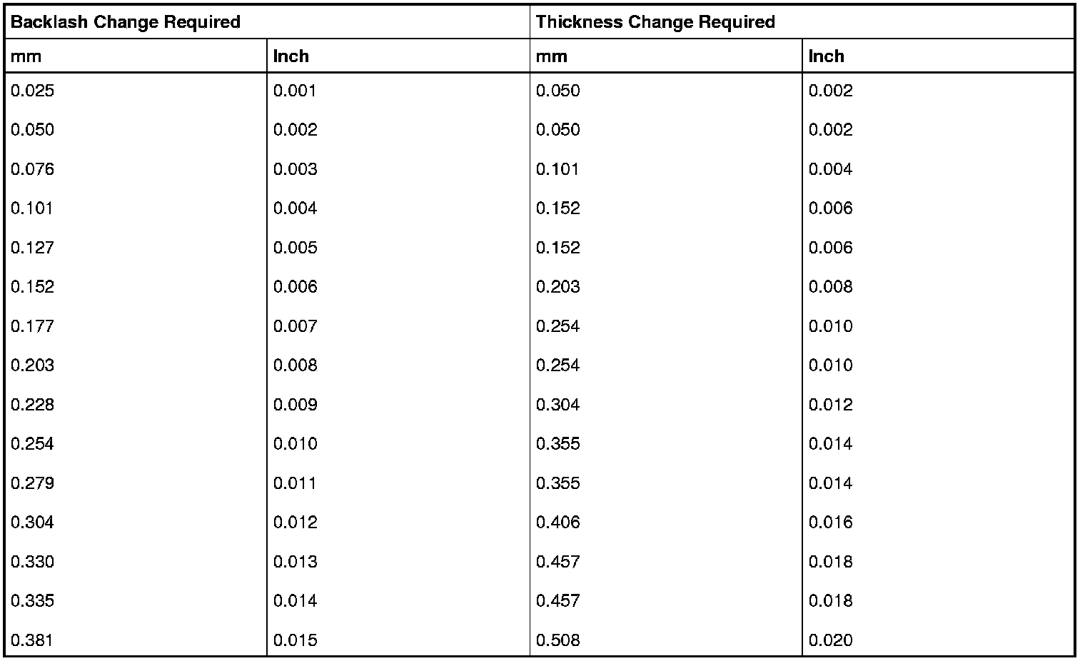 Differential Shim Size Chart