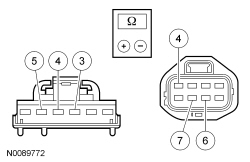 - Measure the resistance between RF power window motor C646, harness side and master window control switch C535A, harness side using the following chart:
