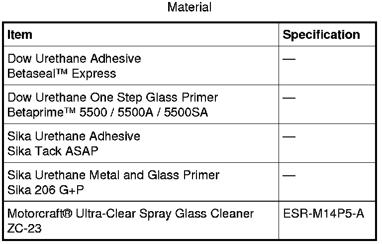 7. NOTE: Be sure to use the same brand and cure-rate products for the urethane adhesive and glass primer. Do not mix different brands of urethane adhesive and glass primer. Refer to the Material Chart in this procedure.