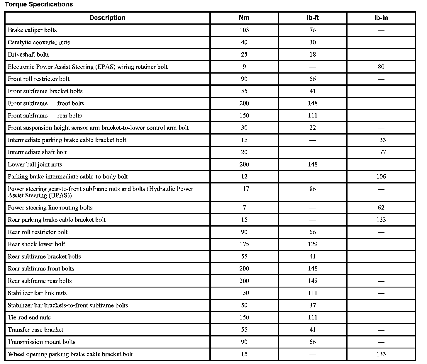 Subframe: Specifications