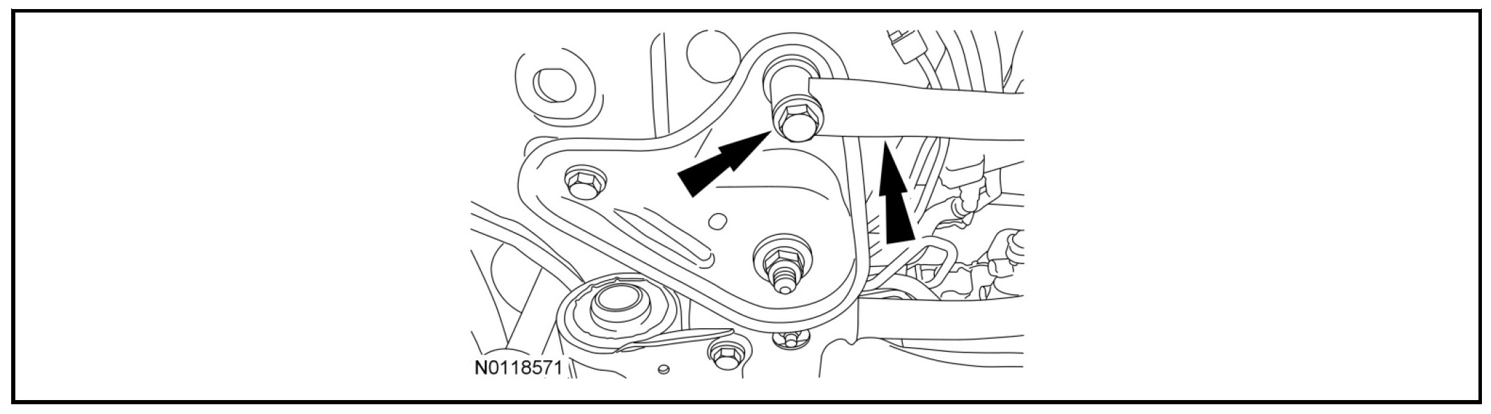 15. Remove the roll restrictor-to-front subframe bolt.