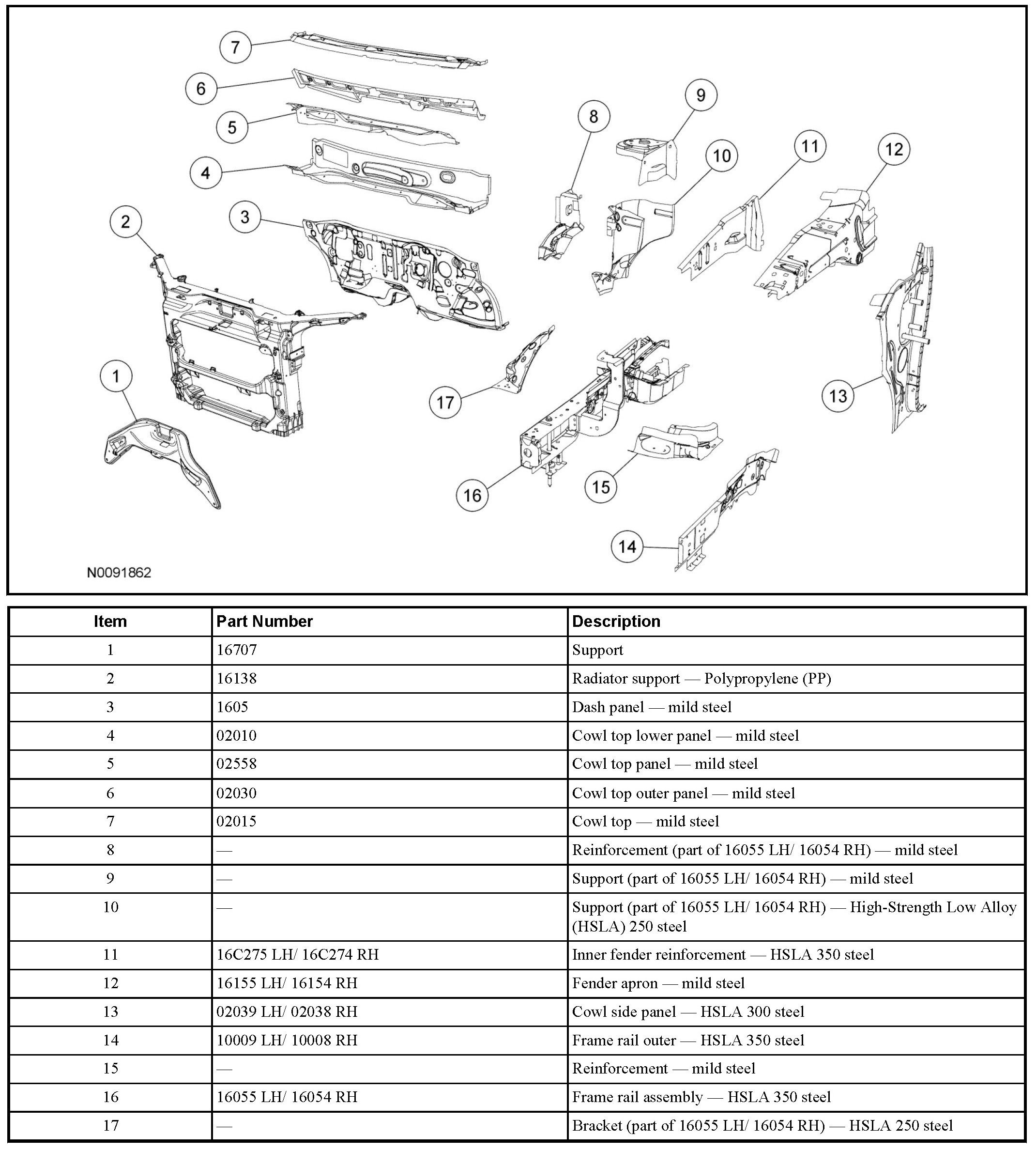 - Returning a vehicle to pre-accident condition can only be assured if repair procedures are carried out by skilled technicians using new genuine Ford parts and Ford-approved methods. Structural component repair procedures approved by Ford, using genuine Ford parts, have been validated by Ford Motor Company engineers. Ford Motor Company does not endorse, cannot attest to, and makes no representations regarding structural repairs (frames, rails, aprons and body panels) carried out using non-genuine Ford Motor Company parts or non-Ford-approved methods. In particular, Ford makes no representations that the vehicle will meet any crash safety or anti-corrosion performance requirement. Such parts and methods have not been tested by Ford, and may not meet Ford's requirements for safety, performance, strength, quality, durability and corrosion protection. Ford Motor Company bears no responsibility or liability of any kind if repairs are performed using alternative structural component repair procedures and/or parts.
