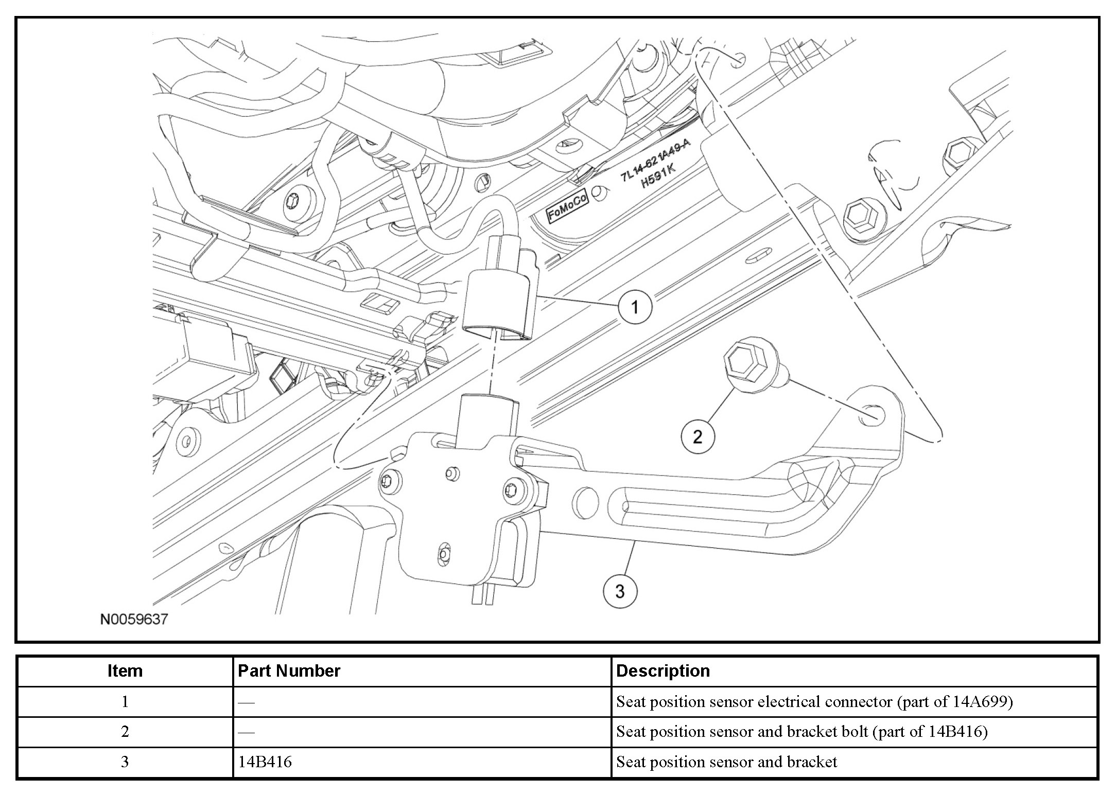 5. Disconnect the electrical connector and remove the seat position sensor and bracket.