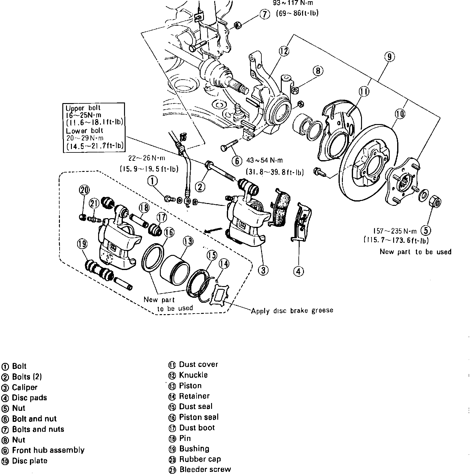 Fig. 5 Front disc brake assembly. 1984-87 626: