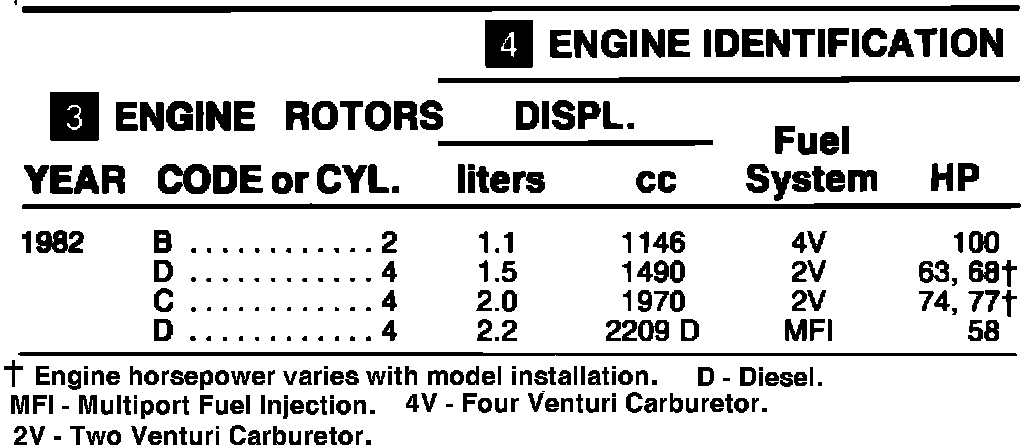 (4) ENGINE IDENTIFICATION: On the line where the engine code appears, read to the right to identify the engine.