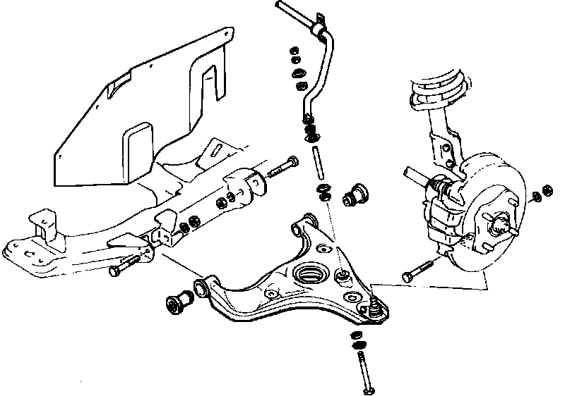3. Remove suspension arm attaching bolts and nuts.