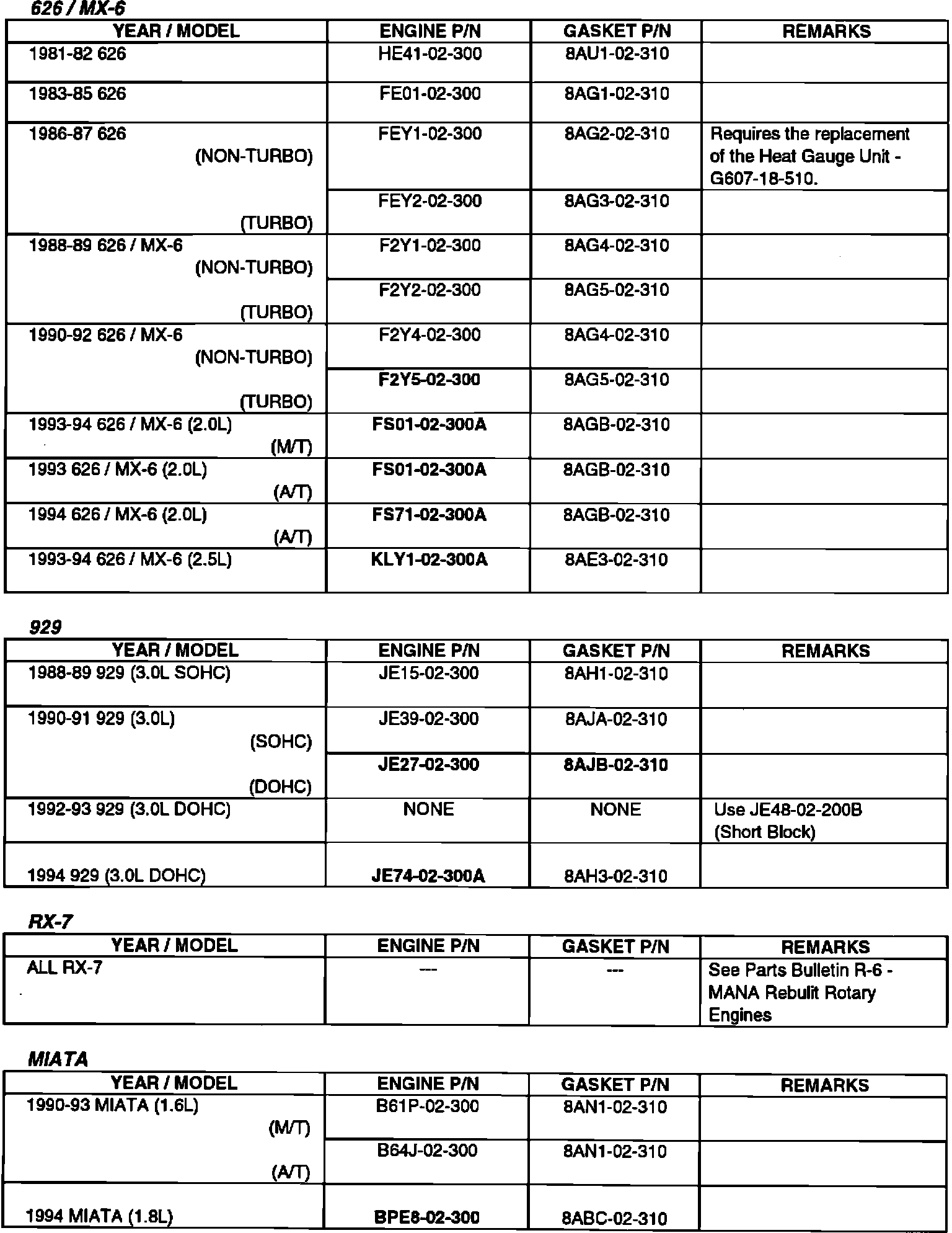PARTIAL ENGINE (LONG BLOCK) AVAILABILITY