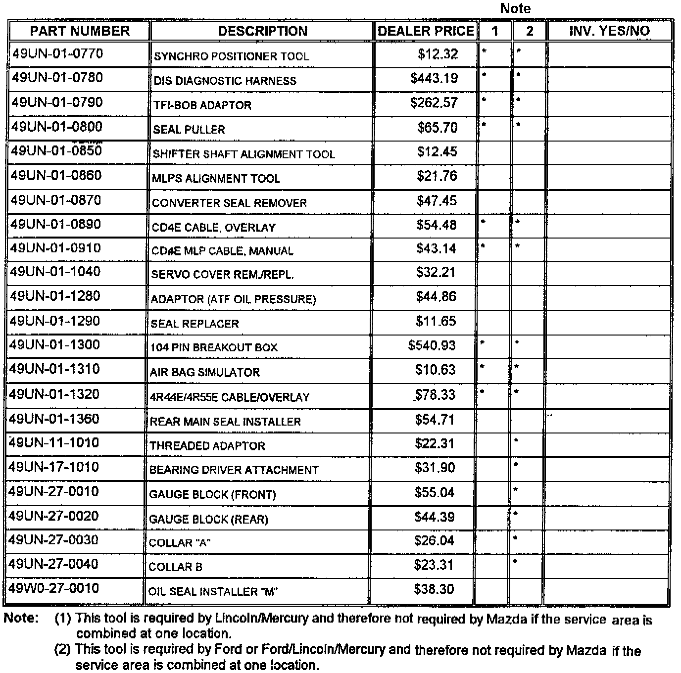 Updates will not include price changes. Prices are subject to change without notice. Use the toll free telephone numbers listed below ORDERING TOOLS" to contact America Kowa Seiki, Inc., Mazda's tool vendor, for current pricing.