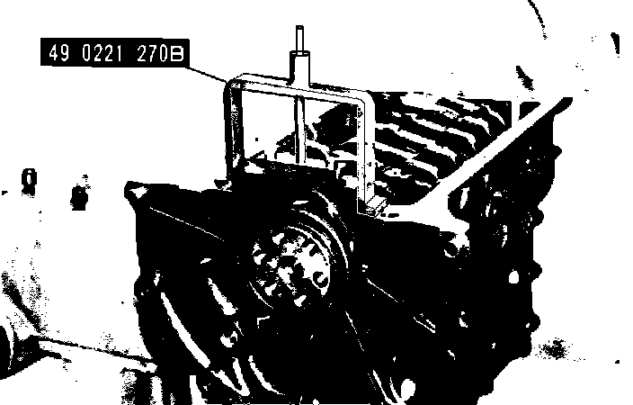 2. Remove main bearing caps and thrust washers. When removing the rear main bearing cap, use puller (49 0221 270B), Fig. 2.