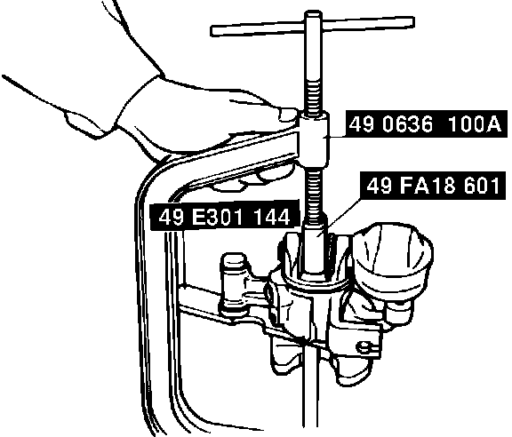 3. Screw piston out of caliper using tool No. 49FA18602 or equivalent.