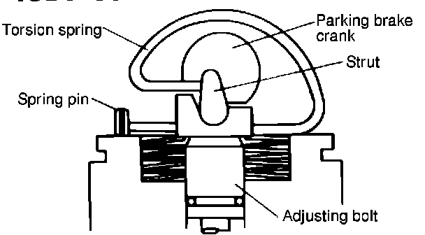 h. Install adjusting bolt, strut and torsion spring into caliper as shown in Fig. 10.