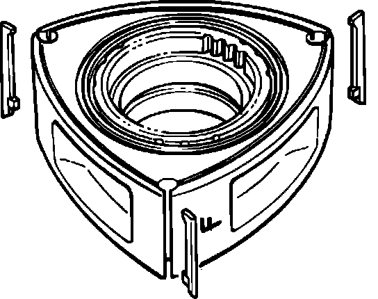 3. Place the bearing housing on the front housing. Tighten the attaching bolts with washers. If the bearing housing has not been removed from the front housing, special care should be taken when installing the spacer, so that the center of the needle bearing in the bearing housing comes to the center of eccentric shaft, and the spacer should be seated to the thrust plate.