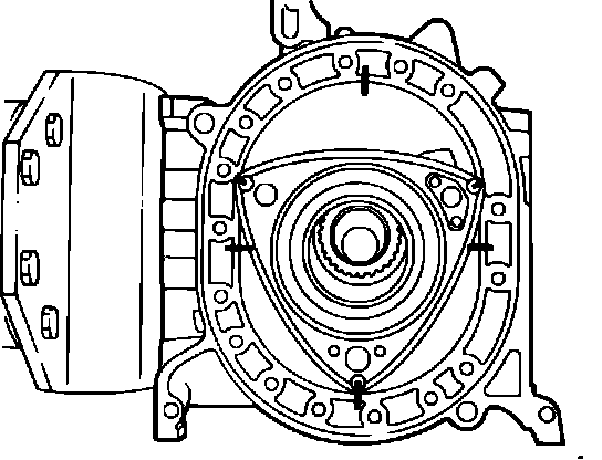 3. Mesh the internal gear and stationary gear so that one of the rotor apexes is set to any one of the four places shown in Fig. 34.