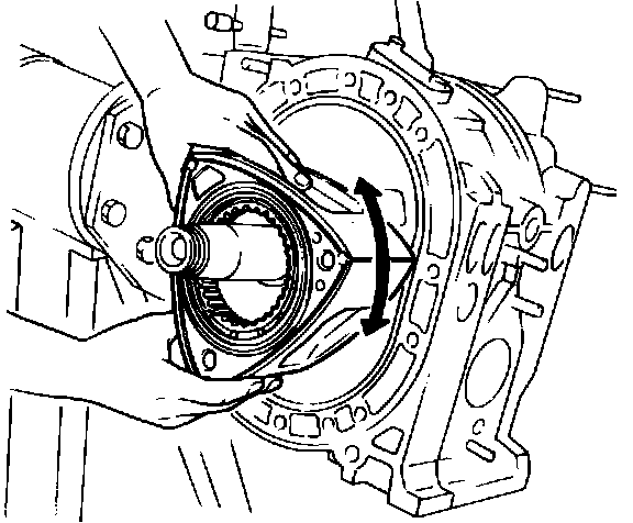 12. Install the rear housing on the rear rotor housing. Ensure side pieces of front and rear apex seals are not wedged between rotor housing and side housing.