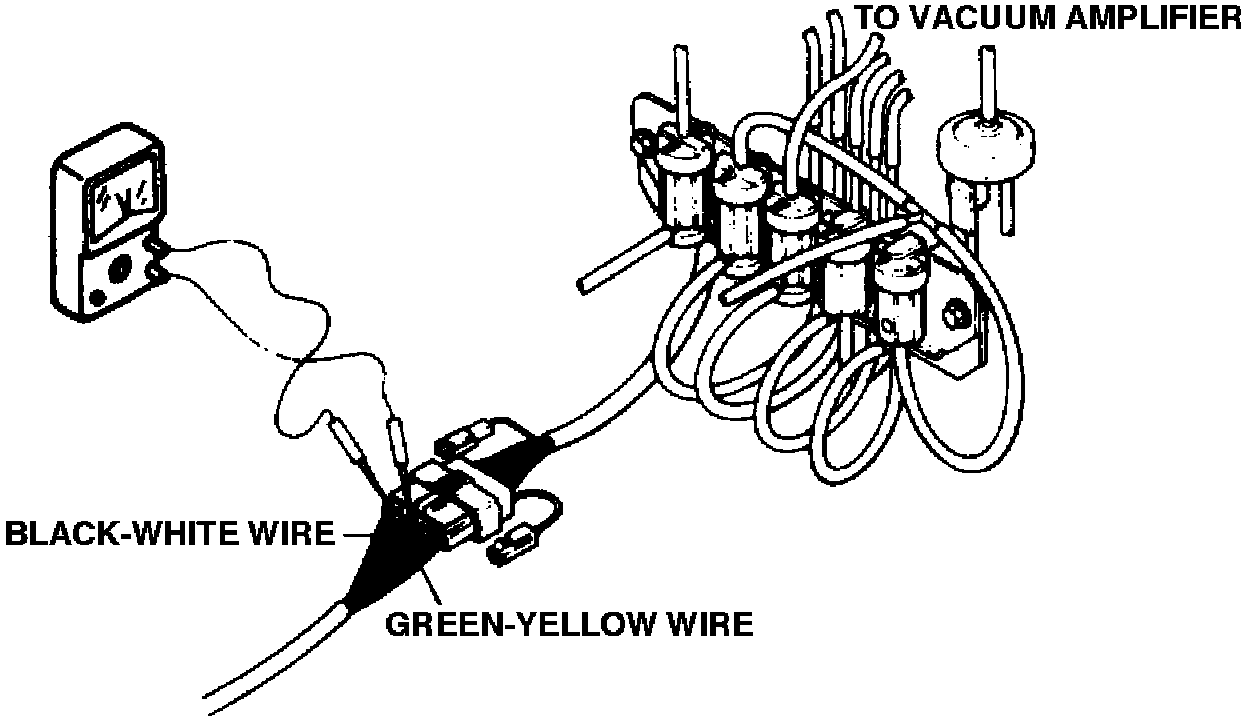 1. Disconnect vacuum hose from three way solenoid valve and from vacuum pipe.