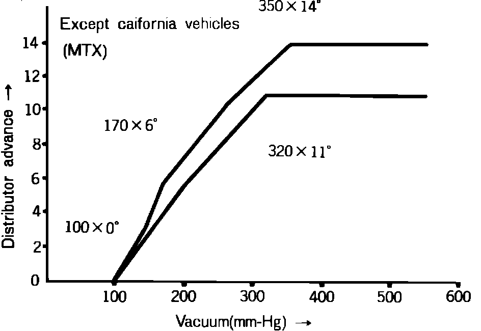 Fig. 61 Vacuum advance chart MTX (non-Calif.).: