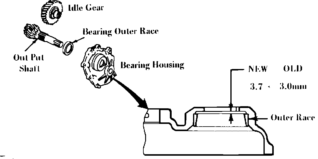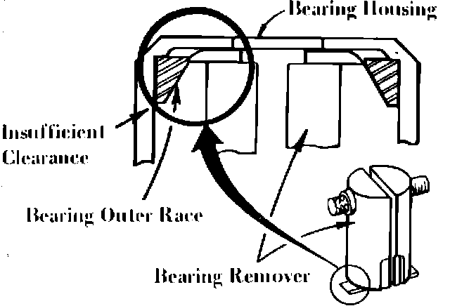 Increasing the gap of outer race and bearing housing from 3.0 mm to 3.7 mm, it is made possible to fit between the bearing remover (49FT 01 361) as shown in the workshop manual page 7B:32, Fig. 49.