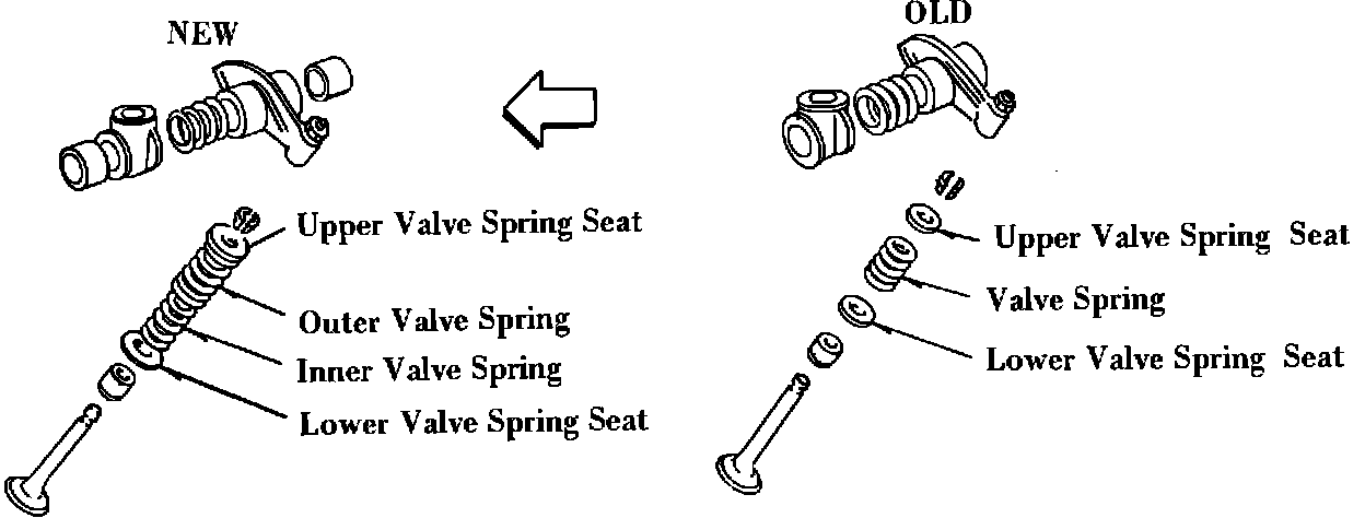 The valve spring has been changed from a single type to double type since the production in April, 1983.