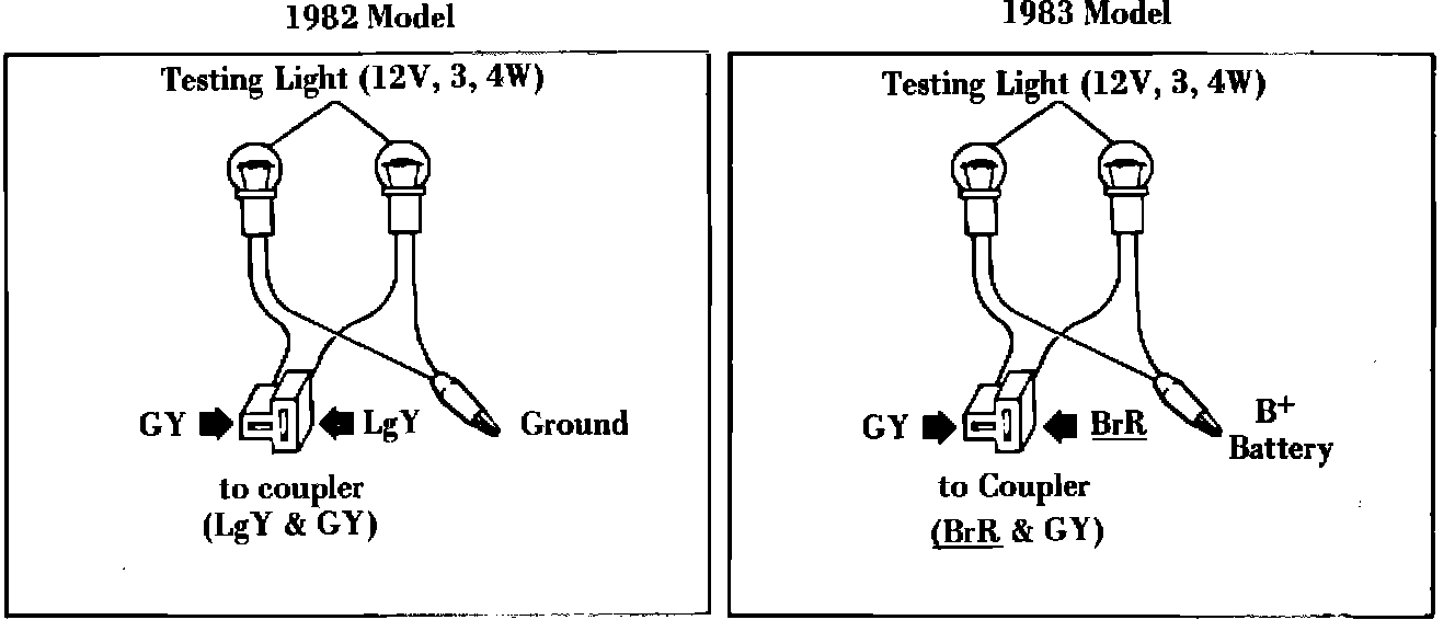 P.S. (1): Refer to the 1983 RX-7 Workshop Manual, pages 1A:16 and 1A:17 for details. P.S. (2): Correct the wiring color code in the 1983 Workshop Manual as shown above.