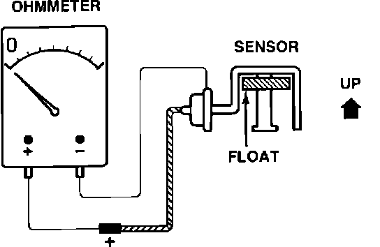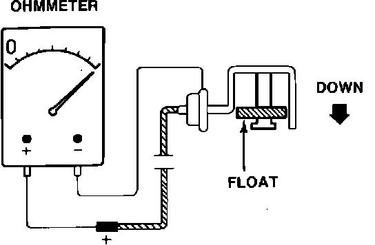 a. When the float is in the "UP" position, the ohmmeter should not show any continuity. (fig. 1)